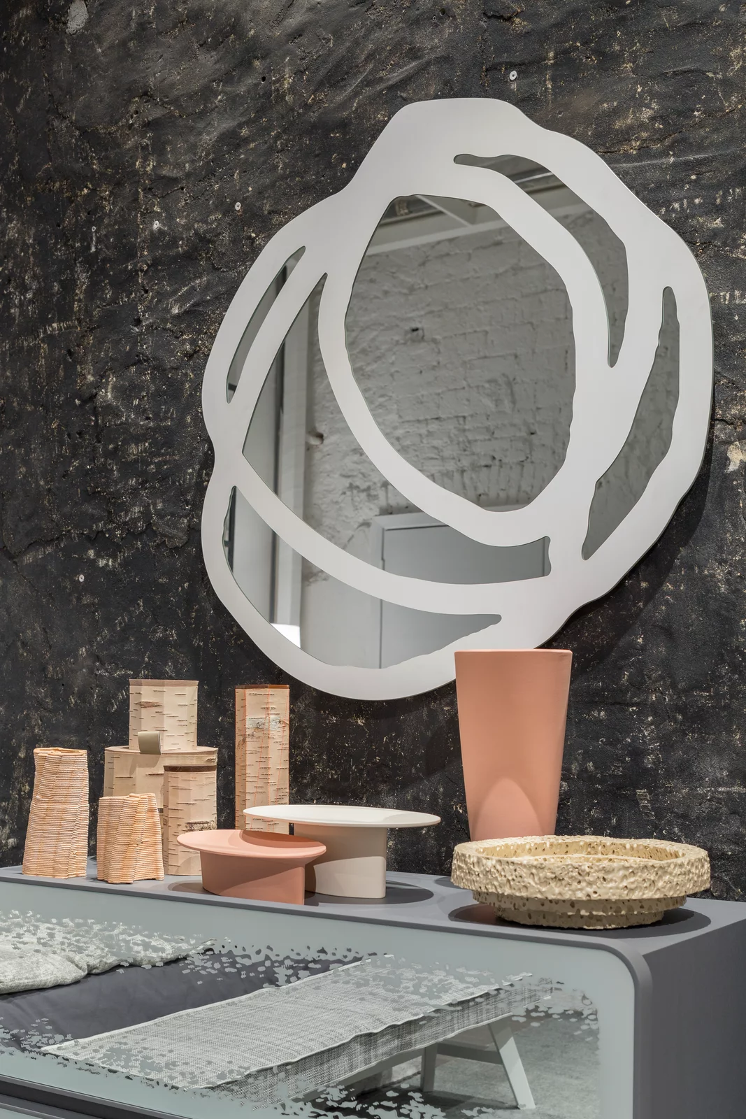 Die Wandspiegel Sweet 97/98 aus dieser Kollektion sind in zwei Größen erhältlich und zeichnen sich durch ihre abgerundeten und unregelmäßigen Ränder aus. Diese ausdrucksstarken und dekorativen Spiegel sind durch ein schwarzes oder weißes Siebdruck-Motiv gekennzeichnet. Dieses Motiv bildet unregelmäßige Kreise und Formen auf der Oberfläche, die sich in einem faszinierenden Zusammenspiel übereinandergelegter Linien miteinander verschlingen. Die Sweet 97/98 Wandspiegel sind somit nicht nur funktionale Elemente, sondern auch künstlerische Statements für die Wandgestaltung. Die ungewöhnliche Formgebung und das aufwendige Siebdruck-Motiv schaffen einen interessanten visuellen Effekt, der die Blicke auf sich zieht und einen dekorativen Akzent im Raum setzt. Diese Spiegel verleihen jedem Raum eine moderne und kunstvolle Note.