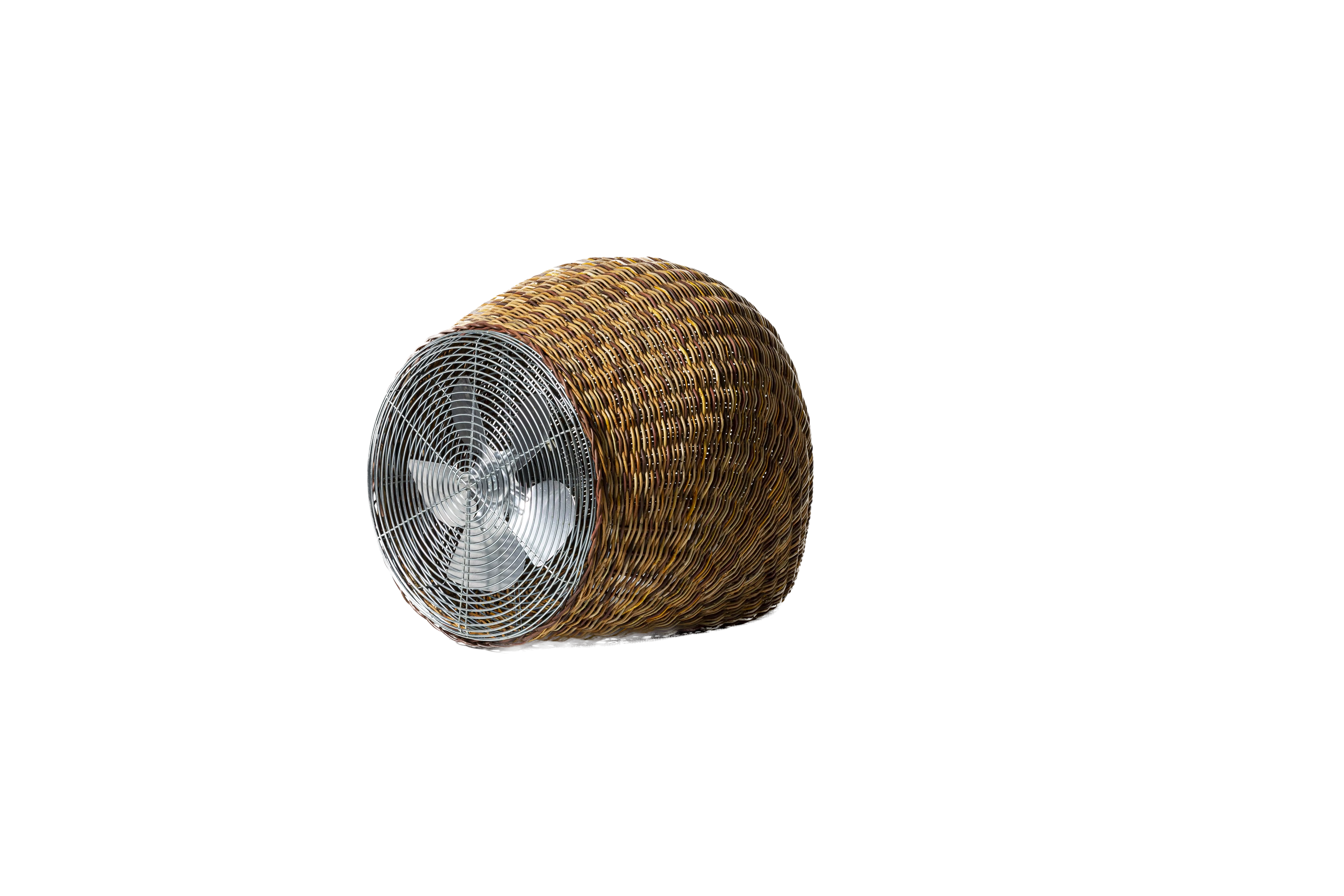 Bodenstehender Ventilator aus Naturbelassenem dark Pulut, handgeflochten . 220 Volt, Stärke 25 Watt . Erhältlich auch 110 Volt, US Stecker .