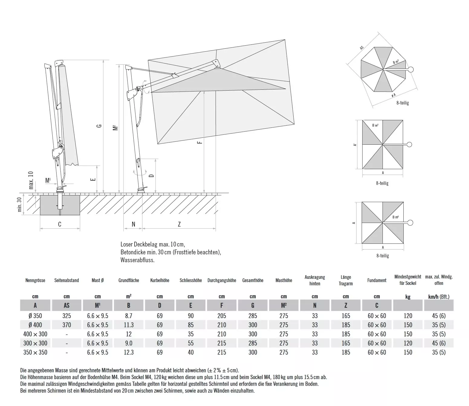 | Ausführung: | Freiarm-/Ampelschirm |