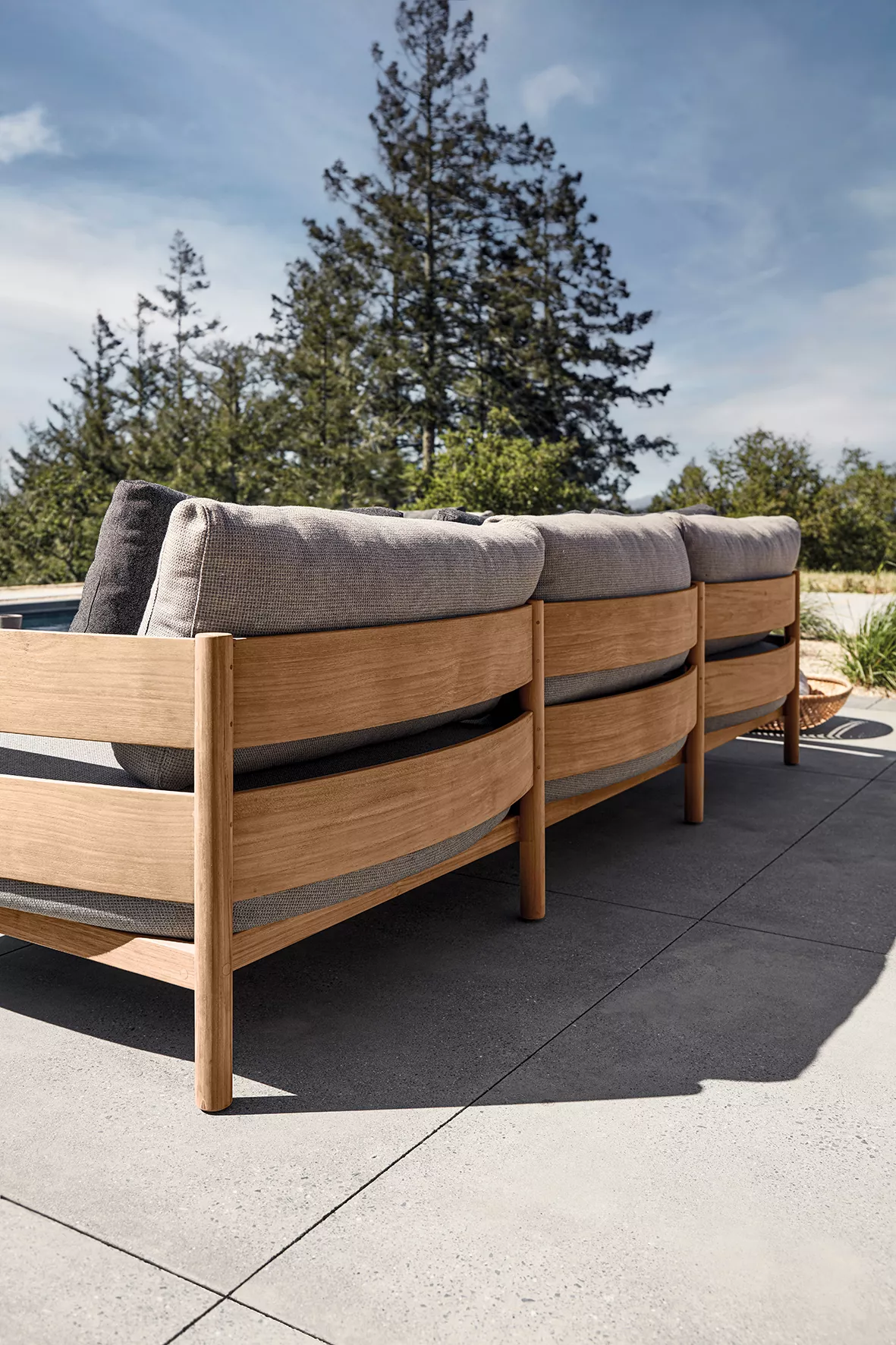 Das Teakholz, das für die Rahmen der Haven Collection verwendet wird, ist eine der am besten geeigneten Holzarten für den Einsatz im Freien. Es ist von Natur aus widerstandsfähig gegen Witterungseinflüsse und Insektenbefall und wird im Laufe der Zeit zu einem schönen silbergrauen Farbton verwittern.