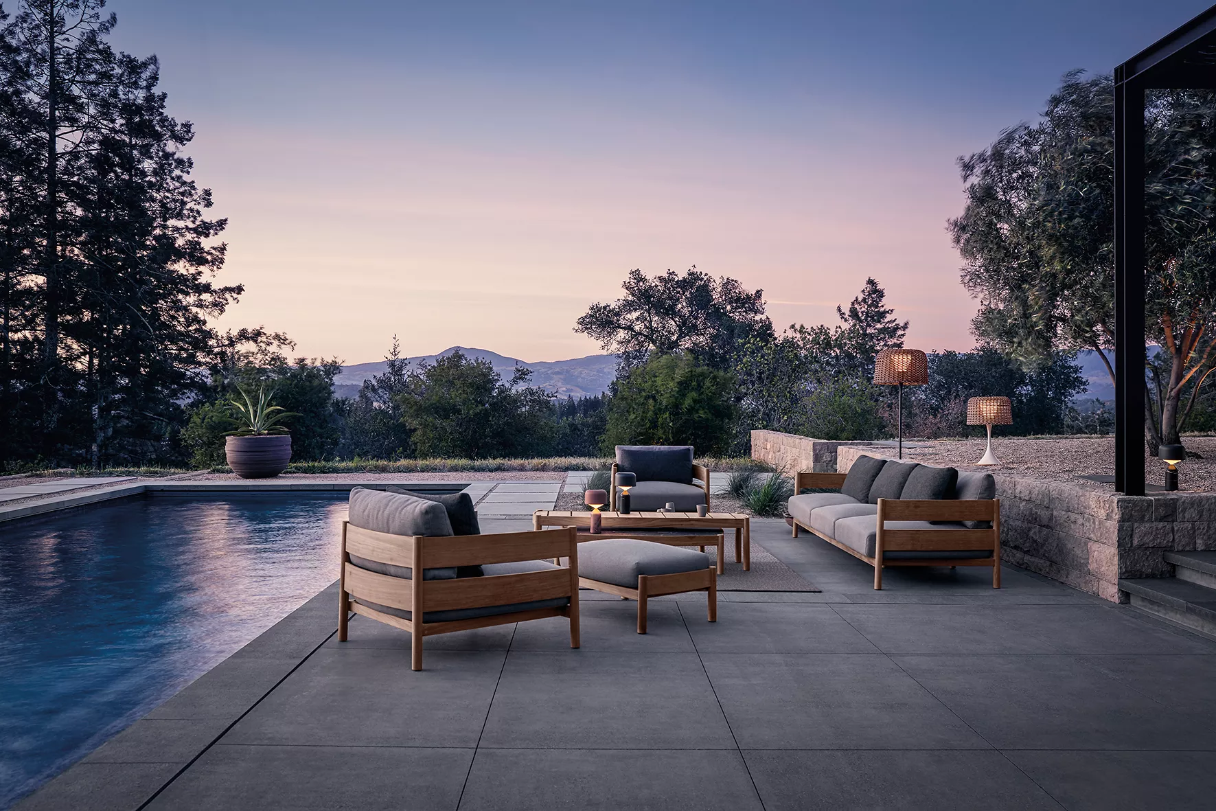 Die Haven Kollektion umfasst verschiedene Möbelstücke, darunter Sofas, Sessel und Lounge-Stühle. Jedes Stück ist so konzipiert, dass es in einer Vielzahl von Außenbereichen, von Terrassen und Decks bis hin zu Gärten und Innenhöfen, gut aussieht und funktioniert.
