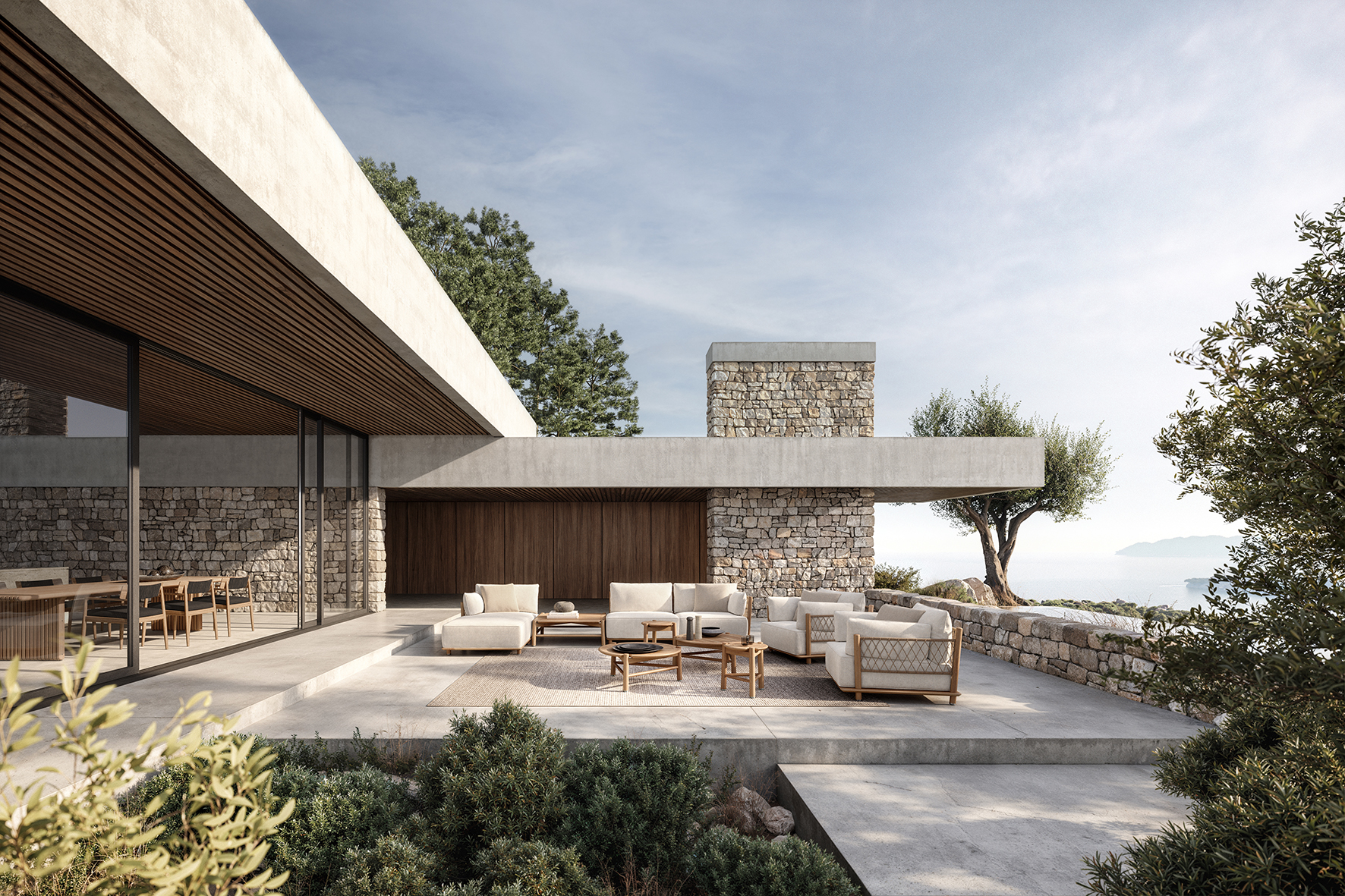 Als Eckmodul eignet sich dieses Element ideal, um eine Lounge zu erweitern oder eine großzügige Ecke zu definieren – ob im privaten Garten, am Pool oder im anspruchsvollen Hospitality-Setting.