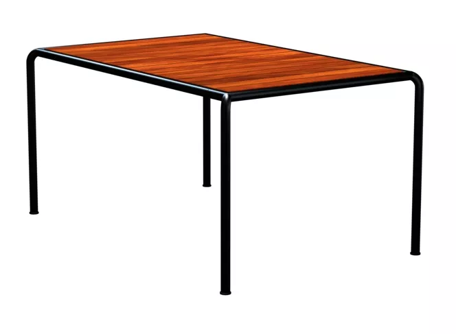 Houe Four Gartentisch • Outdoor Esstisch mit pulverbeschichtetem Aluminiumgestell Die Outdoor Gartentische Houe Four, entworfen von dem Designer Henrik Pedersen, lassen sich vielfältig mit Click Gartenstühlen kombinieren und bilden zusammen eine hochwertige Essgruppe auf Ihrer Terrasse oder im Garten. Das robuste, pulverbeschichtete Aluminiumgestell der Four Kollektion ist mit einem speziell entwickelten Strangpressprofil hergestellt. Die Tischplatte besteht aus gepressten Bambusholzlatten, die besonders pflegeleicht und resistent gegen Feuchtigkeit sind. Die originelle und komfortable Four Gartenmöbel schafft eine leichte, lockere und dennoch hochwertige Atmosphäre. Die klare Formen faszinieren durch eine organische, hochwertige Gestaltung. Der hervorragende Sitzkomfort macht die Four Essgruppe schnell zum Liebling in Ihrem Garten. Aluminiumgestell pulverbeschichtetTischplatte aus Bambusholz, belattetLeicht zu reinigenGanzjährig wetterfest Maße: (B × T × H) 160 × 90 × 74 cm