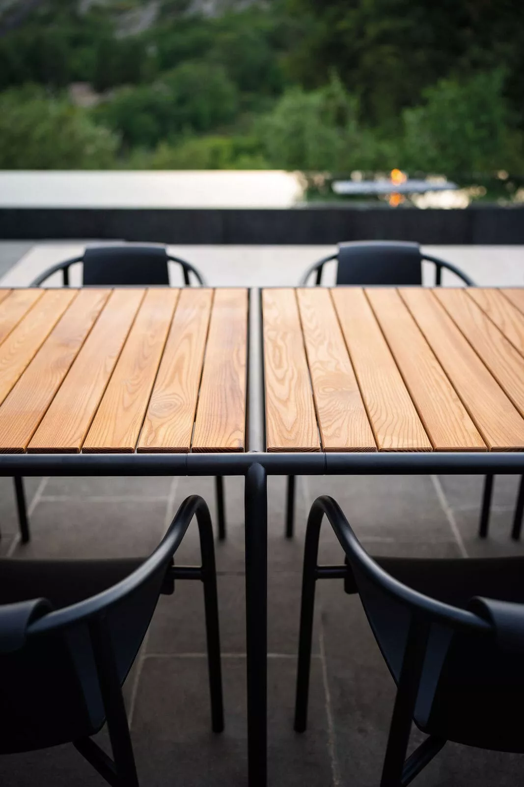 Houe Four Bartisch • Outdoor Tisch mit pulverbeschichtetem Aluminiumgestell Black / Dark Grey Die Outdoor Gartentische Houe Four, entworfen von dem Designer Henrik Pedersen, lassen sich vielfältig mit Click Gartenstühlen kombinieren und bilden zusammen eine hochwertige Essgruppe auf Ihrer Terrasse oder im Garten. Das robuste, pulverbeschichtete Aluminiumgestell der Four Kollektion ist mit einem speziell entwickelten Strangpressprofil hergestellt. Die Tischplatte besteht aus gepressten Bambusholzlatten, die besonders pflegeleicht und resistent gegen Feuchtigkeit sind. Die originelle und komfortable Four Gartenmöbel schafft eine leichte, lockere und dennoch hochwertige Atmosphäre. Die klare Formen faszinieren durch eine organische, hochwertige Gestaltung. Der hervorragende Sitzkomfort macht die Four Essgruppe schnell zum Liebling in Ihrem Garten. Aluminiumgestell pulverbeschichtet, schwarz Tischplatte aus Bambusholz, belattet Leicht zu reinigen Ganzjährig wetterfest Maße: 160 x 90 cm
