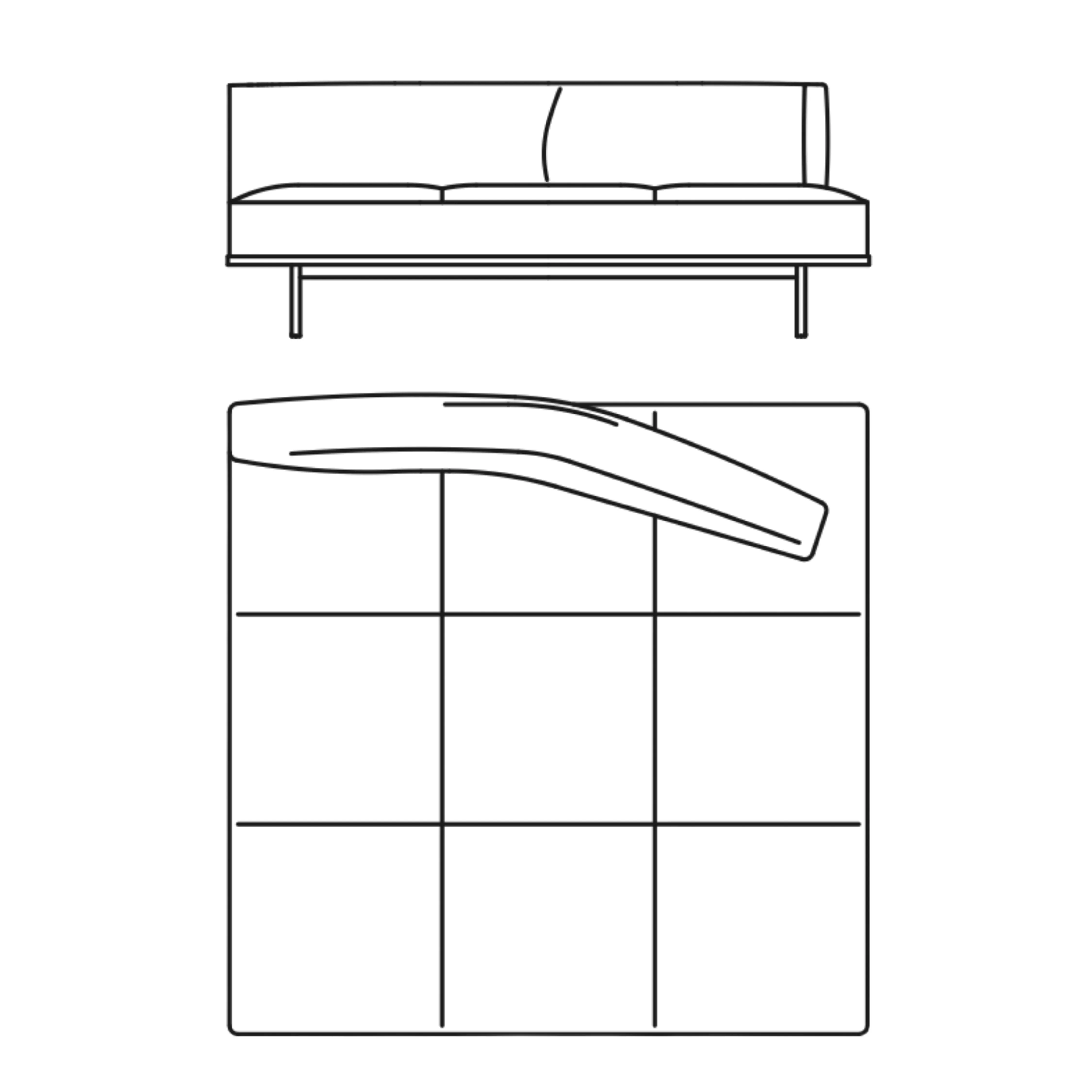 - Gebogener Rücken: Die Chaise Longue und das Endelement haben einen speziellen Bewegungsmechanismus. Die geschwungene Rückenlehne gepolstert mit Hyle, Circa, Knoll Felt, Hermoso, Iseo, Moon ist fixiert.