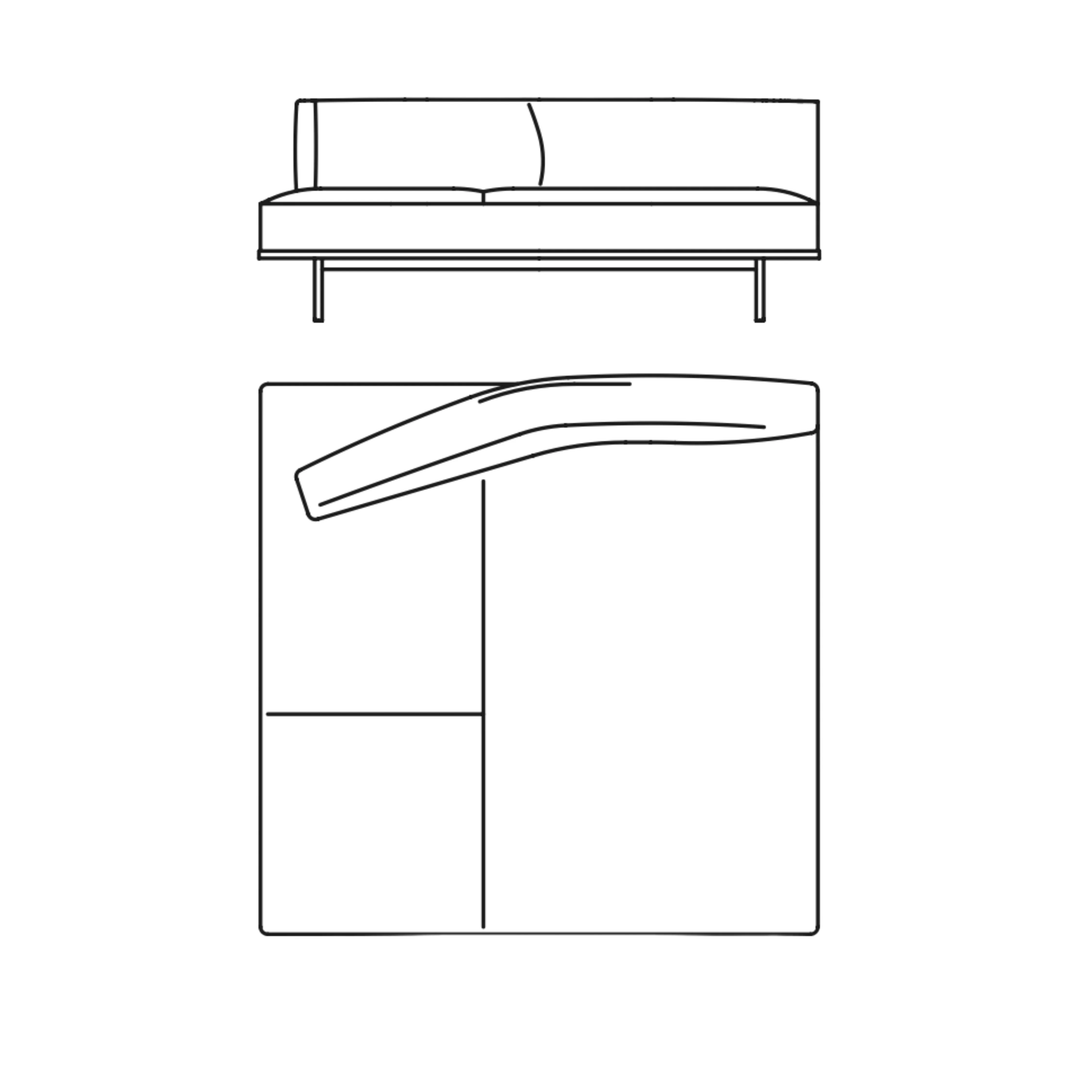 - Gebogener Rücken: Die Chaise Longue und das Endelement haben einen speziellen Bewegungsmechanismus. Die geschwungene Rückenlehne gepolstert mit Hyle, Circa, Knoll Felt, Hermoso, Iseo, Moon ist fixiert.