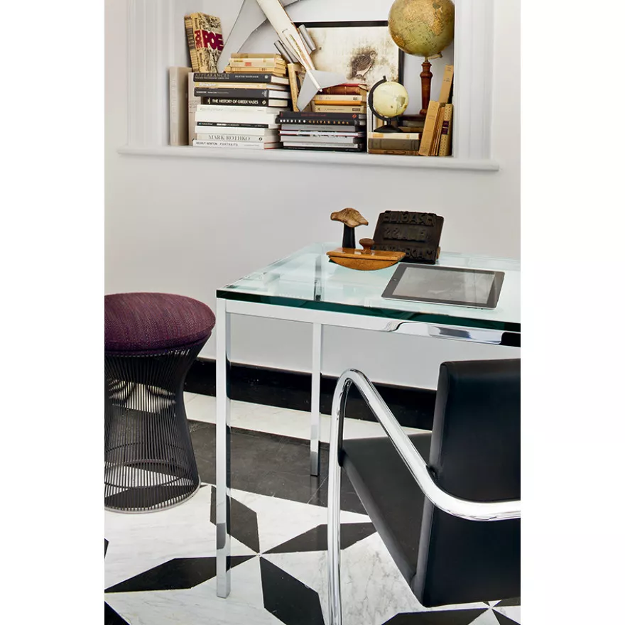 Knoll International • Bertoia Stuhl Zur Feier des 100. Geburtstags des Designers wird auf der Salone del Mobile 2015 der klassische Side Chair in einer neuen Version präsentiert, mit einer verchromten Stahlrohrstruktur und einem Sitz aus Polypropylen in verschiedenen Farben, in einer speziellen "Jubiläumsausgabe". Eine moderne, farbenfrohe Interpretation einer unverwechselbaren Schöpfung, die ihr einzigartiges, lineares Design getreu nachbildet. Der neue Stuhl zeichnet sich durch seinen äußerst bequemen Sitz und seine Anpassungsfähigkeit an eine breite Palette von Kontexten aus, vom privaten Wohnbereich bis hin zu gewerblichen Räumen. Der Hocker ist ebenfalls in dieser neuen Version erhältlich. Im Jahr 1950 boten Hans und Florence Knoll dem Bildhauer Harry Bertoia die Möglichkeit, seine künstlerischen Konzepte frei bei der Schaffung eines Stuhls in ihre Sammlung einzubringen, die sich noch in ihrer Anfangsphase befand. "Wir beschlossen, ihn in vollkommener Freiheit arbeiten zu lassen, um die Kreativität nicht zu behindern, die ihn bereits zu dieser Zeit im Panorama der Designer auszeichnete", erinnerte sich Florence Knoll. Bertoia, ständig auf der Suche nach Perfektion, arbeitete von Hand und erprobte viele Variationen, mit dem Ziel, den Raum zu gestalten und dabei eine leichte, luftige Struktur zu nutzen. Dank eines nahezu künstlerischen Verfahrens wurden verschiedene Sitzgelegenheiten geschaffen, von der Side Chair und dem Hocker für den Essbereich bis zu den Diamond und Large Diamond Sesseln, bis hin zum Lounge-Modell, dem Bird Chair, und dem Asymmetrischen Modell. Jeder hatte seine eigene natürliche und skulpturale Form. Die Bertoia-Kollektion (1952) ist nach wie vor in einer breiten Palette von Bezügen erhältlich, die perfekt zu den innovativen Möbeln passen, die Harry Bertoia mit solchem Geschick und künstlerischer Intelligenz entworfen hat.Gestell und Korb: geschweißter Stahldraht, hochglänzend, satiniert verchromt, Bronze lackiert oder mit Beschichtung aus Rilsan, einer sehr haltbaren und aufgeschmolzenen Nylon-Tauchlackierung.Kratzfest, platzt nicht ab und chemikalienecht.Verbindungen aus Edelstahl. Gleiter: Schwarze Kunststoffgleiter am Stuhl. Hinweis: Das Logo "Knoll" ist in das Stuhlgestell eingeprägt.Der Stuhl besitzt keine Polsterung, kein integriertes Sitzkissen und keine Sitzschale aus Kunststoff. Sitzkissen optional wählbar. Weitere Stoffe sind auf Anfrage erhältlich. Maße: Höhe 73cm x Breite 54cm x Tiefe 58cm