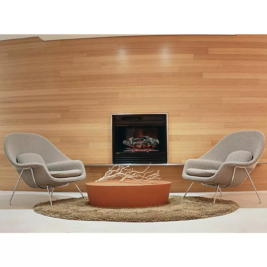 Nachdem er 1941 gemeinsam mit Charles Eames den Organic Design Wettbewerb des Museum of Modern Art mit ihren Experimenten mit gebogenem Sperrholz gewonnen hatte, war Eero Saarinen bestrebt, die Möglichkeiten eines Stuhls weiter zu erkunden, der Bequemlichkeit durch die Form seiner Schale erreichte und nicht durch die Tiefe seiner Polsterung. Zunächst begann er seine Untersuchungen mit Entwürfen für kleinere Fiberglas-Bürostühle, änderte jedoch seine Richtung, als Florence Knoll an ihn herantrat und fragte: "Warum nicht den Stier bei den Hörnern packen und zuerst den Großen machen? Ich möchte einen Stuhl, der wie ein Korb voller Kissen ist... etwas, in das ich mich einkuscheln kann." Obwohl Saarinen genau dort nicht landete, inspirierte der Vorschlag einen der ikonischsten und bequemsten Stühle der modernen Möbelbewegung. Wie viele von Saarinens Möbeldesigns erforderte auch der Womb Chair Produktionsmethoden und Materialien, die sich noch in den Kinderschuhen befanden. Saarinen und Florence Knoll fanden einen Bootsbauer in New Jersey, der mit Fiberglas und Harz experimentierte, um bei der Entwicklung von Herstellungsmethoden für den neuen Stuhl zu helfen. Florence Knoll: "Er war sehr skeptisch. Wir haben ihn einfach angefleht. Ich denke, wir waren so jung und so begeistert, dass er schließlich nachgab und mit uns zusammenarbeitete. Wir hatten viele Probleme und Misserfolge, bis sie schließlich einen Stuhl hatten, der funktionierte."