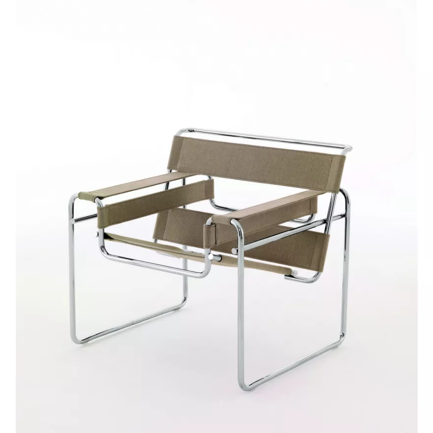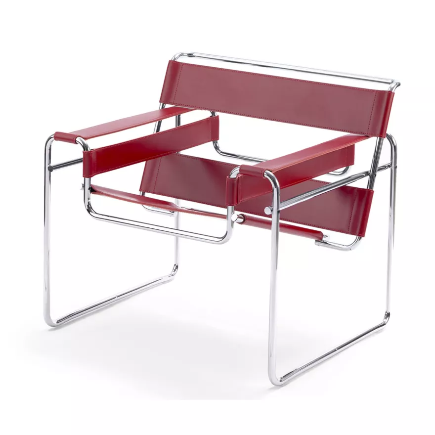 In einem Interview mit einem Knoll-Historiker beschrieb Marcel Breuer, wie er begann, mit gebogenem Stahlrohr zu experimentieren, als er am Bauhaus war: "Zu dieser Zeit war ich ziemlich idealistisch. 23 Jahre alt. Ich freundete mich mit einem jungen Architekten an und kaufte mein erstes Fahrrad. Ich lernte Fahrrad fahren und sprach mit diesem jungen Mann und sagte ihm, dass das Fahrrad eine perfekte Erfindung zu sein scheint, da es sich in den letzten zwanzig, dreißig Jahren nicht verändert hat. Es hat immer noch die ursprüngliche Fahrradform. Er sagte: 'Hast du jemals gesehen, wie sie diese Teile herstellen? Wie sie diese Lenker biegen? Du wärst daran interessiert, denn sie biegen diese Stahlrohre wie Macaroni.'" "Dies blieb irgendwie in meinem Kopf, und ich begann über Stahlrohre nachzudenken, die zu Gestellen gebogen werden - wahrscheinlich ist das das Material, das man für einen elastischen und transparenten Stuhl verwenden könnte. Typischerweise beschäftigte ich mich sehr mit der Transparenz der Form." "So wurde der erste Stuhl gemacht... Mir wurde klar, dass das Biegen weitergehen musste. Es durfte nur gebogen werden, ohne Schweißnähte darauf, damit es auch in Teilen verchromt und zusammengebaut werden konnte. So wurde der erste Wassily geboren. Ich hatte selbst ein gewisses Maß an Angst vor Kritik. Ich habe tatsächlich niemandem erzählt, dass ich diese Experimente durchführte. [Wassily] Kandinsky, der zufällig in mein Studio kam, als der erste Stuhl gebracht wurde, sagte: 'Was ist das?' Er war sehr interessiert, und dann wurde das Bauhaus sehr daran interessiert. Ein Jahr später hatte ich das gesamte Bauhaus mit dieser Möbel ausgestattet."