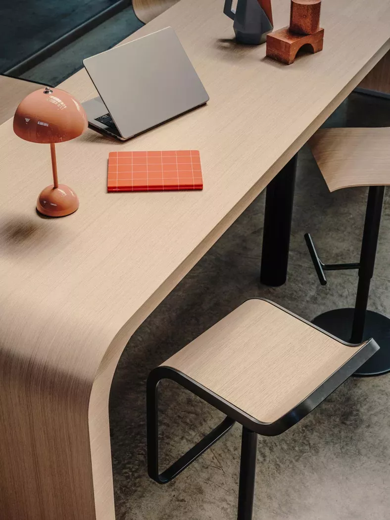 Lapalma Brunch Tischplatte / 110 cm Der Lapalma Brunch Tisch eröffnet eine Welt voller gestalterischer Möglichkeiten und Funktionalität. Mit einer Tischplattenhöhe von 110 cm bietet er die ideale Grundlage für verschiedenste Anwendungen. Dieses modulare Tischsystem besticht durch seine gebogene Verbundplatte (separat erhältlich), die in verschiedenen Ausführungen und Größen erhältlich ist und somit eine Vielzahl von Gestaltungsoptionen ermöglicht. Das tragende Gerüst der Platte besteht aus hochwertigem Multiplex aus Pappel- und Buchenholz, das in verschiedenen Furniervarianten erhältlich ist. Alternativ kann die Platte auch weiß lackiert oder mit robustem Laminat oder dem innovativen Fenix® in Weiß beschichtet werden, was nicht nur eine edle Optik, sondern auch eine pflegeleichte und strapazierfähige Oberfläche gewährleistet. Tischplatte (Tischbein optional wählbar) Tischplatte aus gebogener Verbundplatte (Eiche gebleicht, offenporig, lackiert oder Laminat weiß) Gewicht: 36 - 38 kg Maße: (B × H × T ) 70 × 110 × 140/180 cm