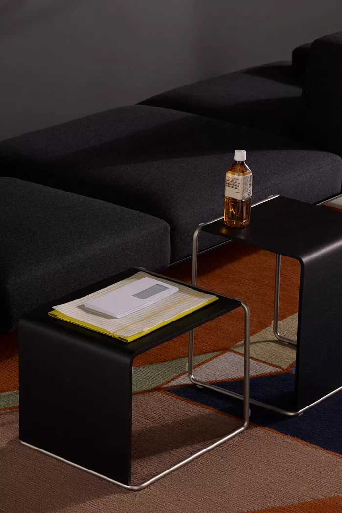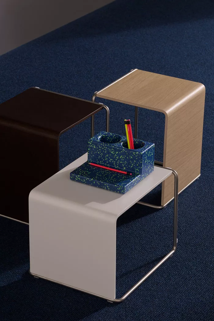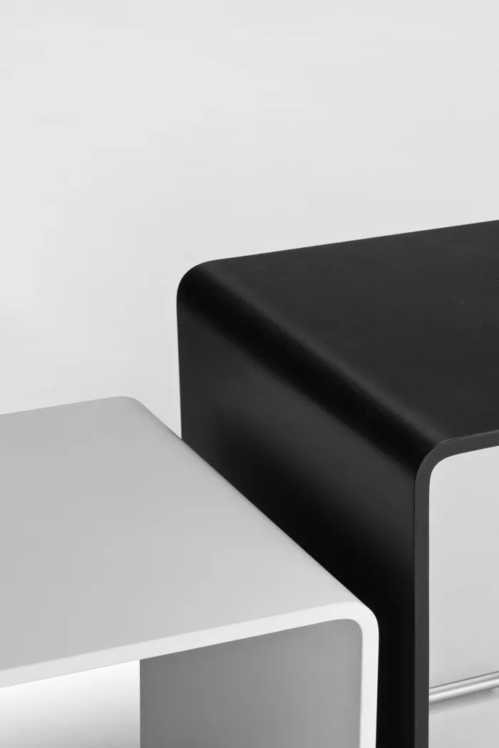 Ueno ist nicht nur ein Möbelstück, sondern ein ästhetisches Statement. Das Metallrohrprofil zeichnet elegante und schwebende Formen, während die abgerundeten Ecken sanfte Konturen zeigen. Takashi Shinozaki, der Designer, ließ sich von den Hockern seiner Schulzeit inspirieren, was diesem Projekt eine zusätzliche Tiefe verleiht.