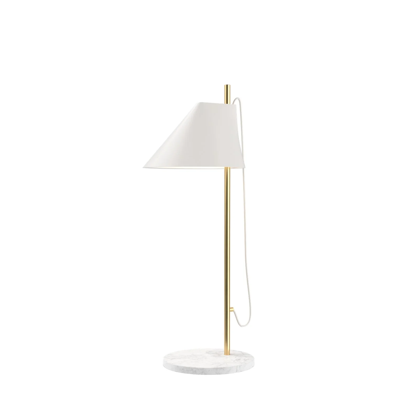 Die Tischleuchte Yuh wurde 2017 vom dänisch-italienischen Designerduo GamFratesi für Louis Poulsen entworfen. Ursprünglich in Schwarz und Weiß erhältlich, wurde die Serie später um Varianten in Messing und Marmor erweitert. Die Leuchte zeichnet sich durch ihre Flexibilität und ihre platzsparende Konstruktion aus. Der Leuchtenschirm lässt sich drehen und in der Höhe verstellen, so dass das Licht gezielt auf den gewünschten Bereich gelenkt werden kann, um eine optimale Atmosphäre zu schaffen. Das minimalistische Design setzt sich von der runden Basis bis zur schmalen Öffnung an der Spitze des Schirms fort. Der Name „Yuh“ bezieht sich auf die phonetische Schreibweise des englischen Wortes „you“ (du), was die persönliche Ausrichtung der Leuchte unterstreicht.