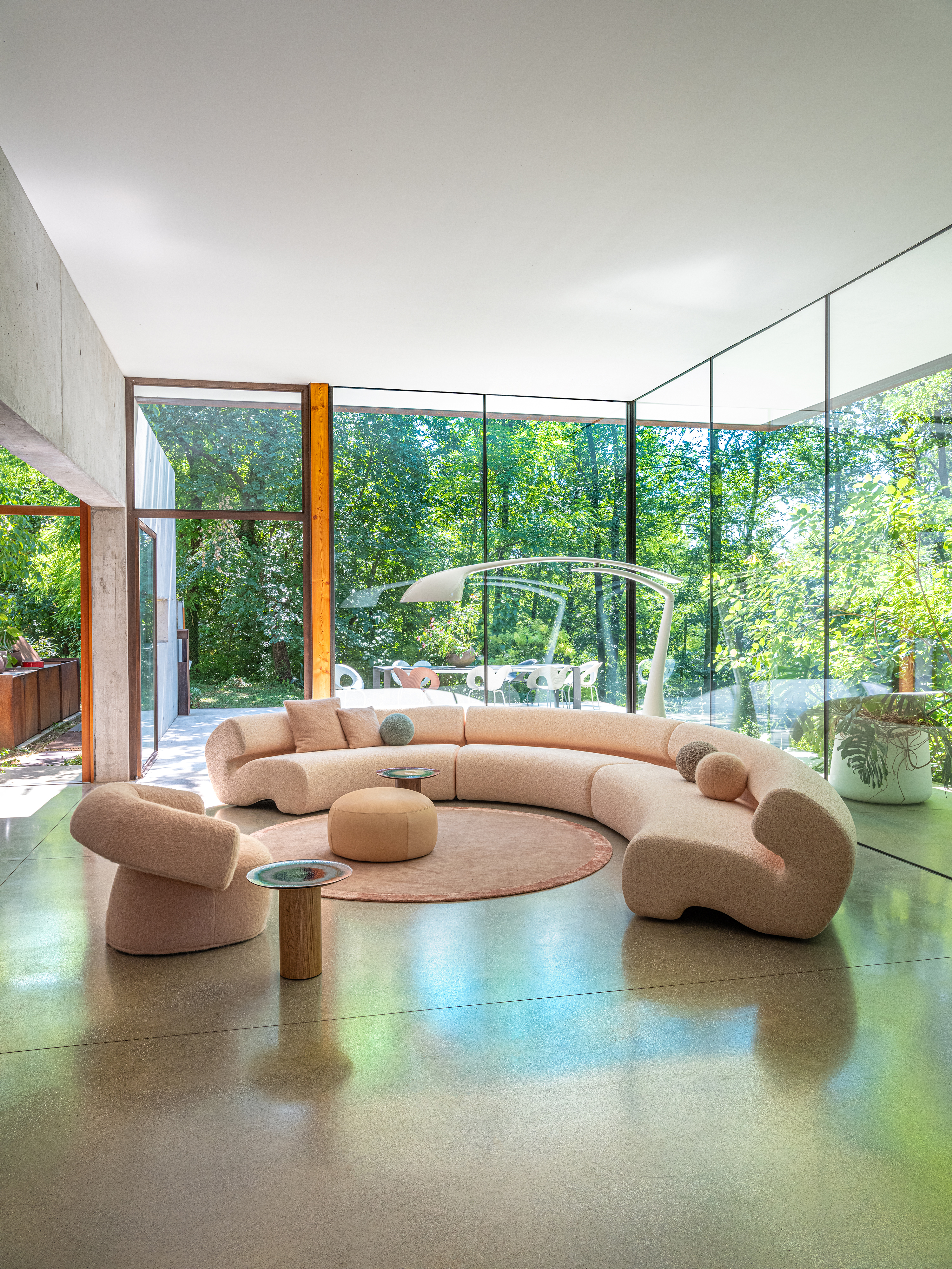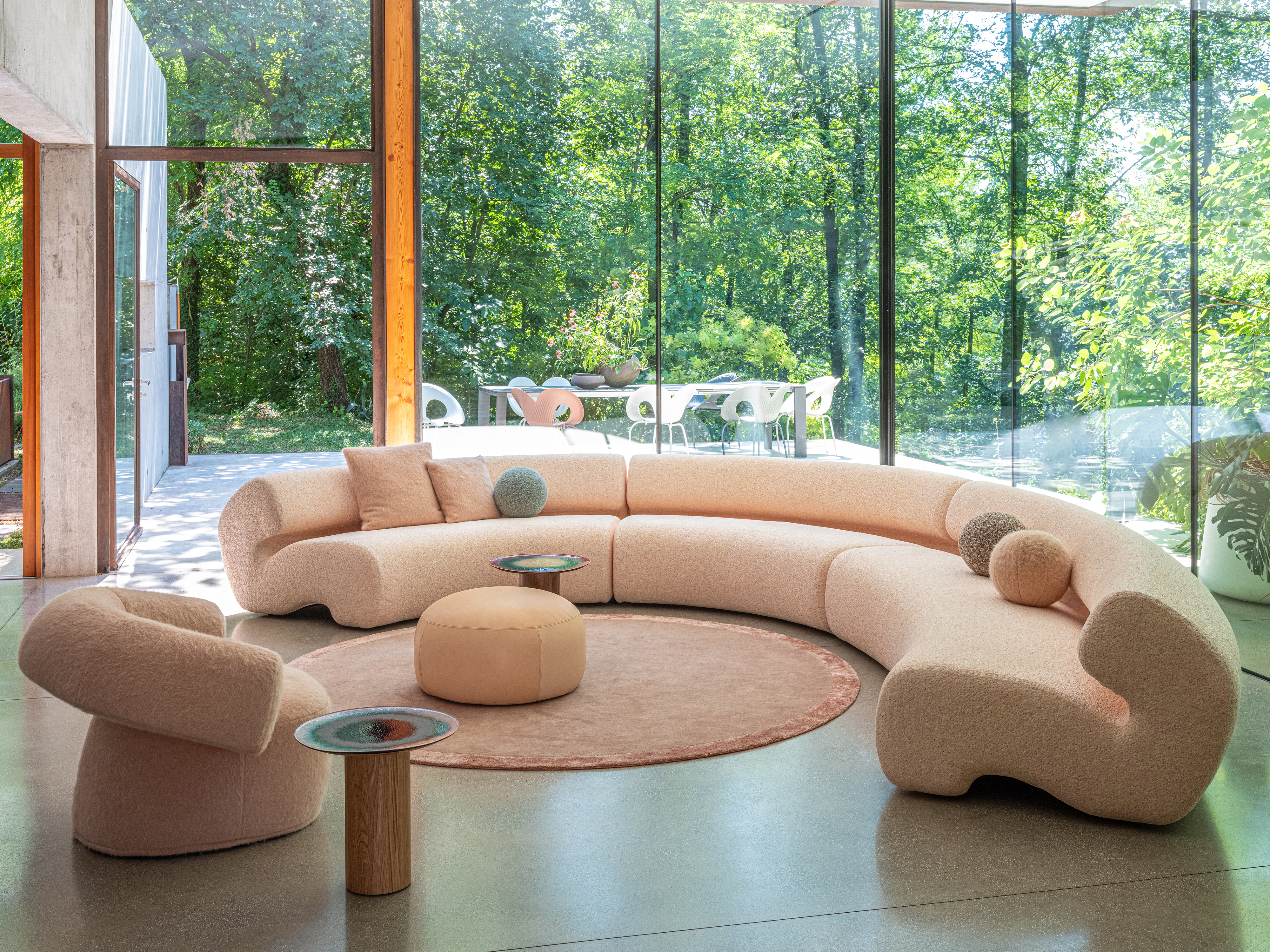 MOROSO GOGAN Sofa • Zusammenstellung 323 cmFließende Eleganz und zeitlose Ruhe – die Kollektion Gogan von Patricia Urquiola für Moroso Sanft geschwungene Linien, wie von Wind und Wasser geformt – die Kollektion Gogan vereint natürliche Harmonie mit modernem Design. Ihren Namen verdankt sie den japanischen Steinen, die an Flussufern und Seen liegen: vom Wasser geglättet, vom Lauf der Zeit gezeichnet und dennoch kraftvoll in ihrer Ruhe. Die Formen von Sofa und Sessel erinnern an diese Steine – massiv und zugleich weich, als würden sie Sie einladen, sich entspannt zurückzulehnen. Gogan spielt mit Gegensätzen: Schwere wirkt leicht, Stabilität trifft auf Eleganz, Natürlichkeit auf höchsten Komfort. Weiche, organische Sitzflächen mit leicht nach hinten geneigter Form sorgen für ein besonders angenehmes Sitzgefühl. Die dezent geneigte Rückenlehne bietet Halt, ohne dominant zu wirken. Filigrane Verbindungselemente zwischen Sitz und Rücken verleihen der Kollektion eine schwebende Leichtigkeit – ein Zusammenspiel von Balance, Design und Komfort, das inspiriert und beruhigt zugleich. Gerne bieten wir Ihnen auf Anfrage eine Auswahl weiterer Stoffe an. Kontaktieren Sie uns telefonisch oder per E-Mail – unser Team berät Sie individuell und kompetent.Gestell / Struktur: Elemente aus PU-Schaum, in unterschiedlicher Dichte und Polyesterwatte, Innenstruktur aus Holz. Standardmäßig Polyurethan in der Version gemäß CAL TB117, frei von Flammschutzmitteln. Füße aus schwarzem Polypropylen, an der Struktur verschraubt. Die Gogan-Kollektion ist abziehbar, mit Ausnahme der Bezüge aus Leder und Vinyl. Lose Kissen sind im Preis nicht eingeschlossen.Sitztiefe: 65 cmSitzhöhe: 44 cmNetto-Gewicht: 285 kgMaße (B × T × H) : 323 x 323 x 70 cm Bitte beachten Sie, dass die angezeigten Bilder Illustrationszwecken dienen und von dem tatsächlichen Endprodukt abweichen können.