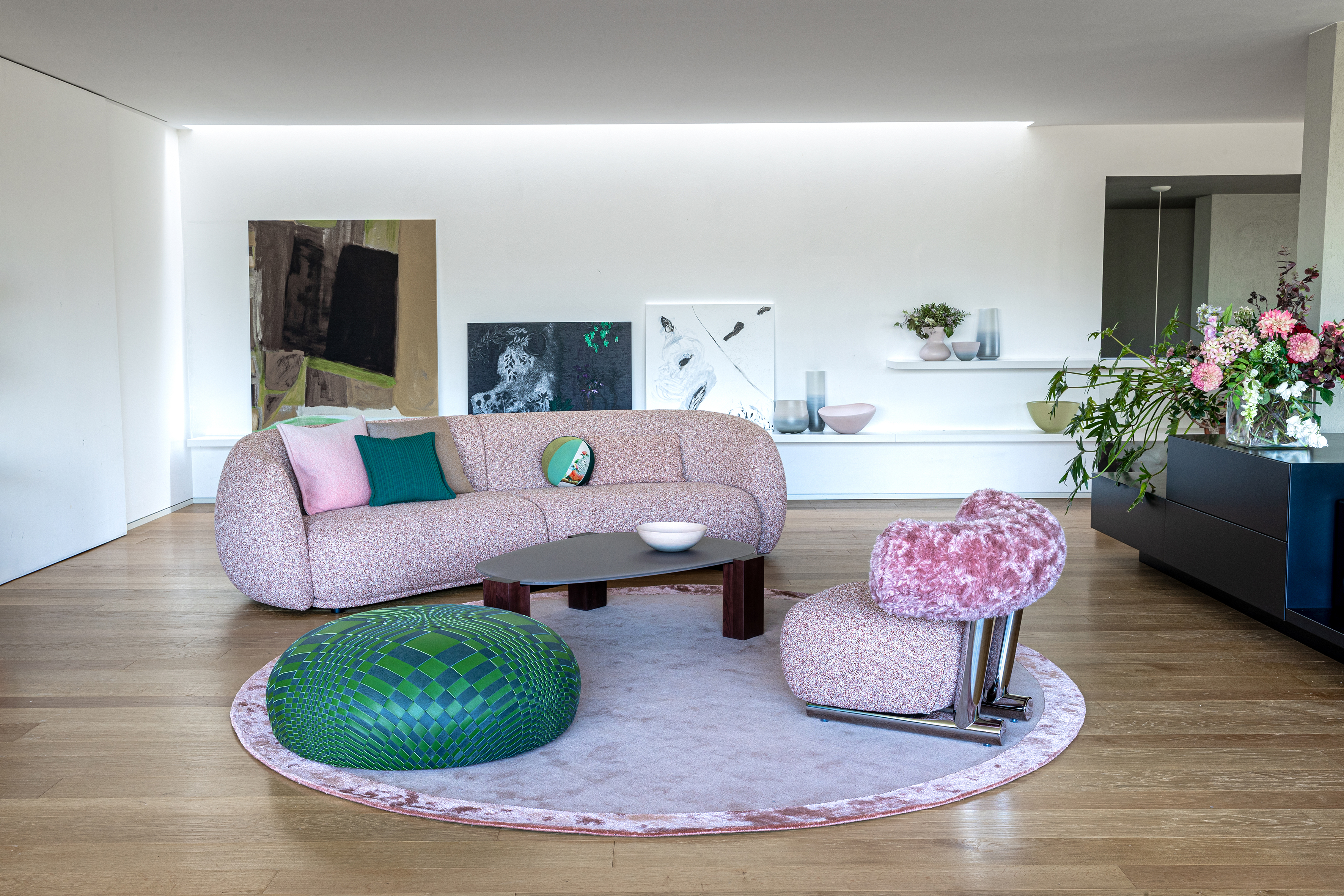 MOROSO GRUUVE Sofa • verschiedene GrößenFließende Formen und Freies Wohnen – die Kollektion Gruuve von Patricia Urquiola für Moroso Mit Gruuve präsentiert Patricia Urquiola ein modulares Sofasystem, das den Geist der 1970er-Jahre aufgreift und in die Gegenwart überführt. Inspiriert vom legendären Lowseat-System aus dem Jahr 2000, zeigt sich Gruuve als Weiterentwicklung mit kraftvoller Präsenz und weichen, bis zum Boden reichenden Konturen. Die Kollektion verkörpert eine moderne Interpretation des freien, nonkonformistischen Wohnens – mit fließenden, unregelmäßigen Linien und vier Modulen, die sich zu individuellen Kompositionen zusammenfügen lassen. So entsteht Bewegung im Raum, ein Gefühl von Dynamik und spielerischer Freiheit. Ob im privaten Wohnbereich oder in öffentlichen Lounges – Gruuve zieht die Blicke auf sich und schafft durch seine gegliederten, aber harmonisch verbundenen Formen Zonen der Begegnung und des Austauschs. Die doppelseitige Sitzgestaltung lädt sowohl zum entspannten Zurücklehnen als auch zum geselligen Gespräch ein. Ein besonderes Highlight: Gruuve ist auch in exklusiven, von Patricia Urquiola entworfenen Stoffdesigns erhältlich – individuell, ausdrucksstark und unverwechselbar. Gerne bieten wir Ihnen auf Anfrage eine Auswahl weiterer Stoffe an. Kontaktieren Sie uns telefonisch oder per E-Mail – unser Team berät Sie individuell und kompetent.Gestell / Struktur: Grundlage aus Polimex® und Polsterung aus flexiblem Polyurethan mit variabler Dichte. Standardmäßig Polyurethan in der Version gemäß CAL TB117, frei von Flammschutzmitteln. Das Gruuve-Sofa ist abziehbar. Sitztiefe: 66 cmSitzhöhe: 41 cmNetto-Gewicht: 65 kgMaße (B × T × H)Offenes Modul: 243 x 124 x 72 cmGeschlossenes Modul: 240 x 128 x 72 cm Bitte beachten Sie, dass die angezeigten Bilder Illustrationszwecken dienen und von dem tatsächlichen Endprodukt abweichen können.