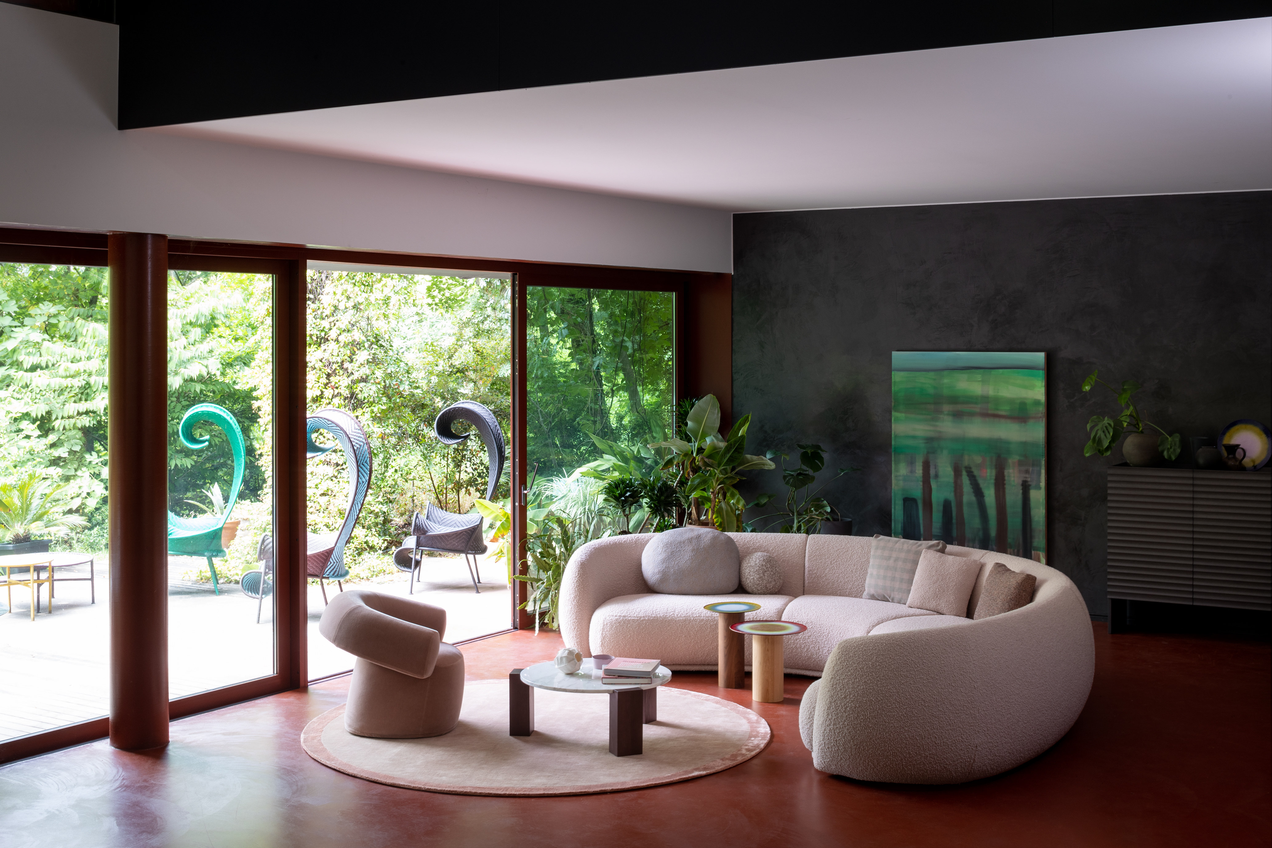 MOROSO GOGAN Sofa • Zusammenstellung 323 cmFließende Eleganz und zeitlose Ruhe – die Kollektion Gogan von Patricia Urquiola für Moroso Sanft geschwungene Linien, wie von Wind und Wasser geformt – die Kollektion Gogan vereint natürliche Harmonie mit modernem Design. Ihren Namen verdankt sie den japanischen Steinen, die an Flussufern und Seen liegen: vom Wasser geglättet, vom Lauf der Zeit gezeichnet und dennoch kraftvoll in ihrer Ruhe. Die Formen von Sofa und Sessel erinnern an diese Steine – massiv und zugleich weich, als würden sie Sie einladen, sich entspannt zurückzulehnen. Gogan spielt mit Gegensätzen: Schwere wirkt leicht, Stabilität trifft auf Eleganz, Natürlichkeit auf höchsten Komfort. Weiche, organische Sitzflächen mit leicht nach hinten geneigter Form sorgen für ein besonders angenehmes Sitzgefühl. Die dezent geneigte Rückenlehne bietet Halt, ohne dominant zu wirken. Filigrane Verbindungselemente zwischen Sitz und Rücken verleihen der Kollektion eine schwebende Leichtigkeit – ein Zusammenspiel von Balance, Design und Komfort, das inspiriert und beruhigt zugleich. Gerne bieten wir Ihnen auf Anfrage eine Auswahl weiterer Stoffe an. Kontaktieren Sie uns telefonisch oder per E-Mail – unser Team berät Sie individuell und kompetent.Gestell / Struktur: Elemente aus PU-Schaum, in unterschiedlicher Dichte und Polyesterwatte, Innenstruktur aus Holz. Standardmäßig Polyurethan in der Version gemäß CAL TB117, frei von Flammschutzmitteln. Füße aus schwarzem Polypropylen, an der Struktur verschraubt. Die Gogan-Kollektion ist abziehbar, mit Ausnahme der Bezüge aus Leder und Vinyl. Lose Kissen sind im Preis nicht eingeschlossen.Sitztiefe: 65 cmSitzhöhe: 44 cmNetto-Gewicht: 285 kgMaße (B × T × H) : 323 x 323 x 70 cm Bitte beachten Sie, dass die angezeigten Bilder Illustrationszwecken dienen und von dem tatsächlichen Endprodukt abweichen können.