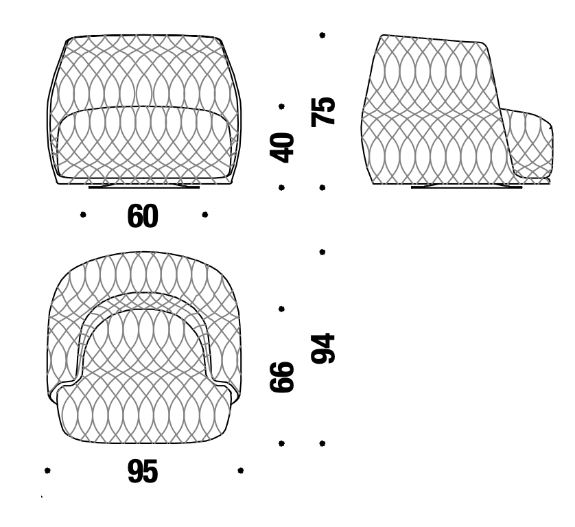 - Füße aus Polypropylen an der Struktur verschraubt, Höhe 40 mm. Mit dem Sofa wird auch ein Set Füße der Höhe 70 mm geliefert.