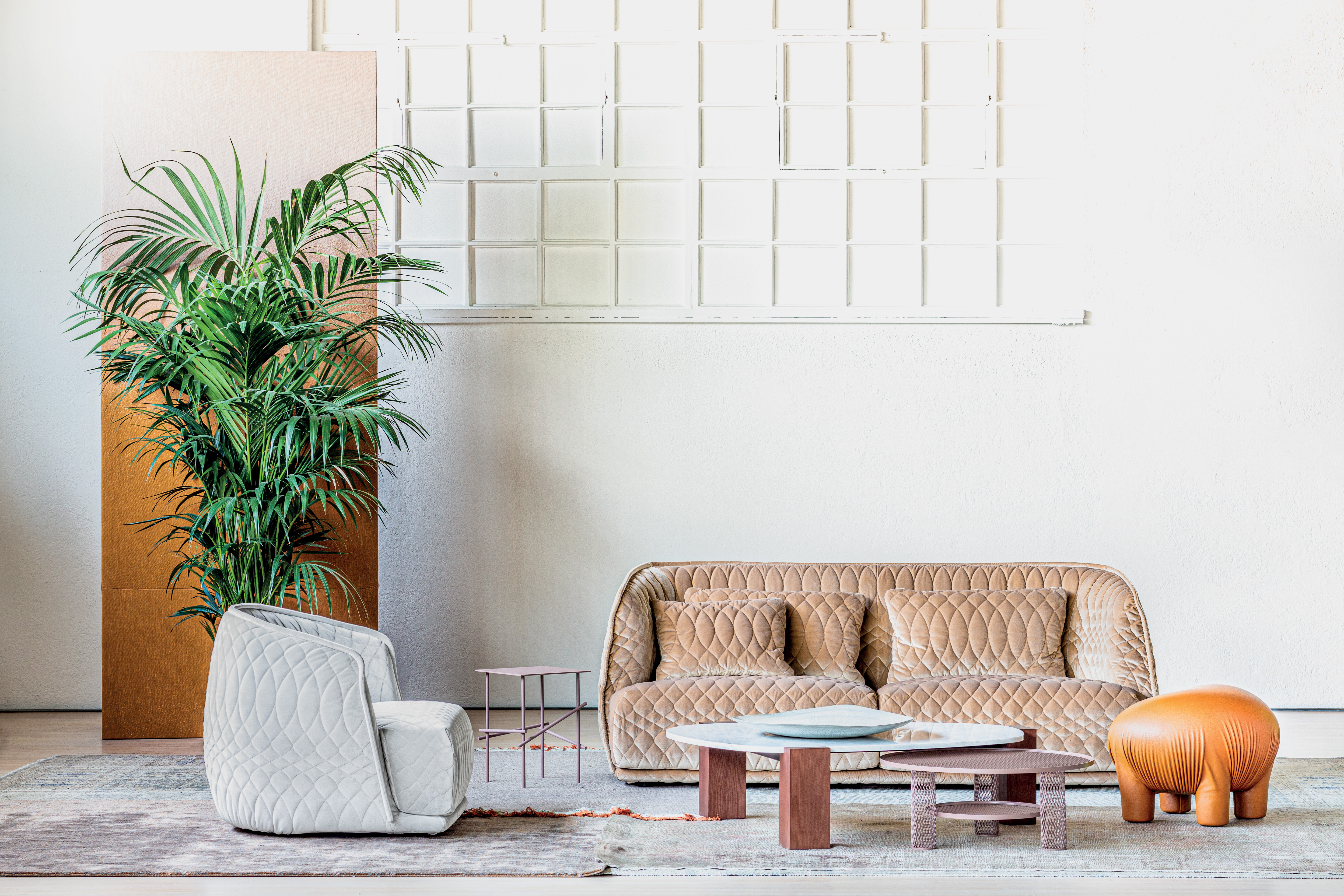 - Der Bezugsstoff der Kollektion hat eine gesteppte Musterung nach der Zeichnung der Designerin Patricia Urquiola.