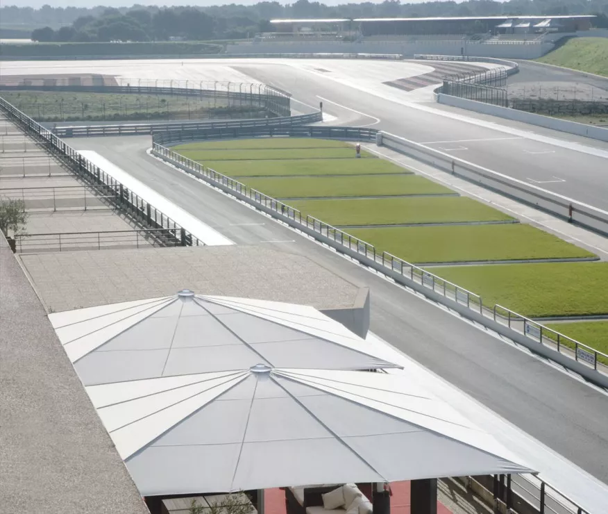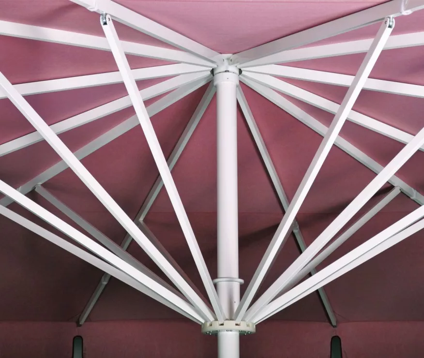 Diese Schirme zeichnen sich durch einen wartungsfreien Antrieb sowie durch eine besonders robuste Konstruktion aus.