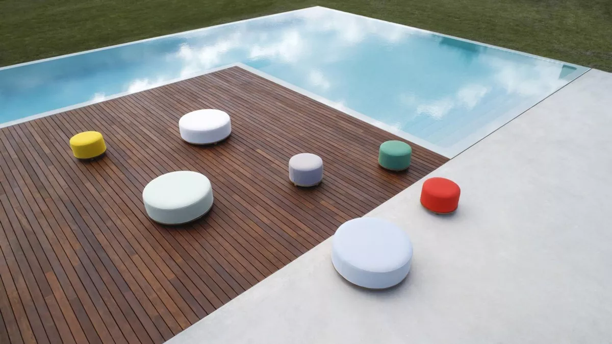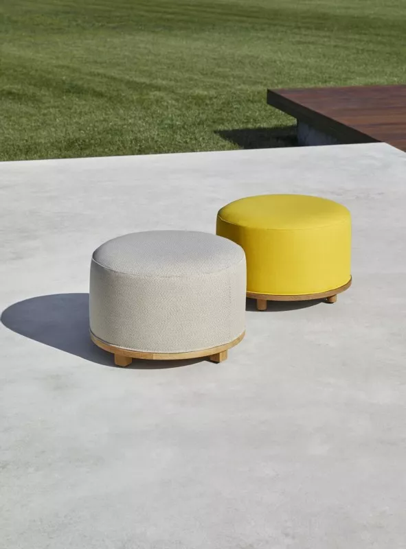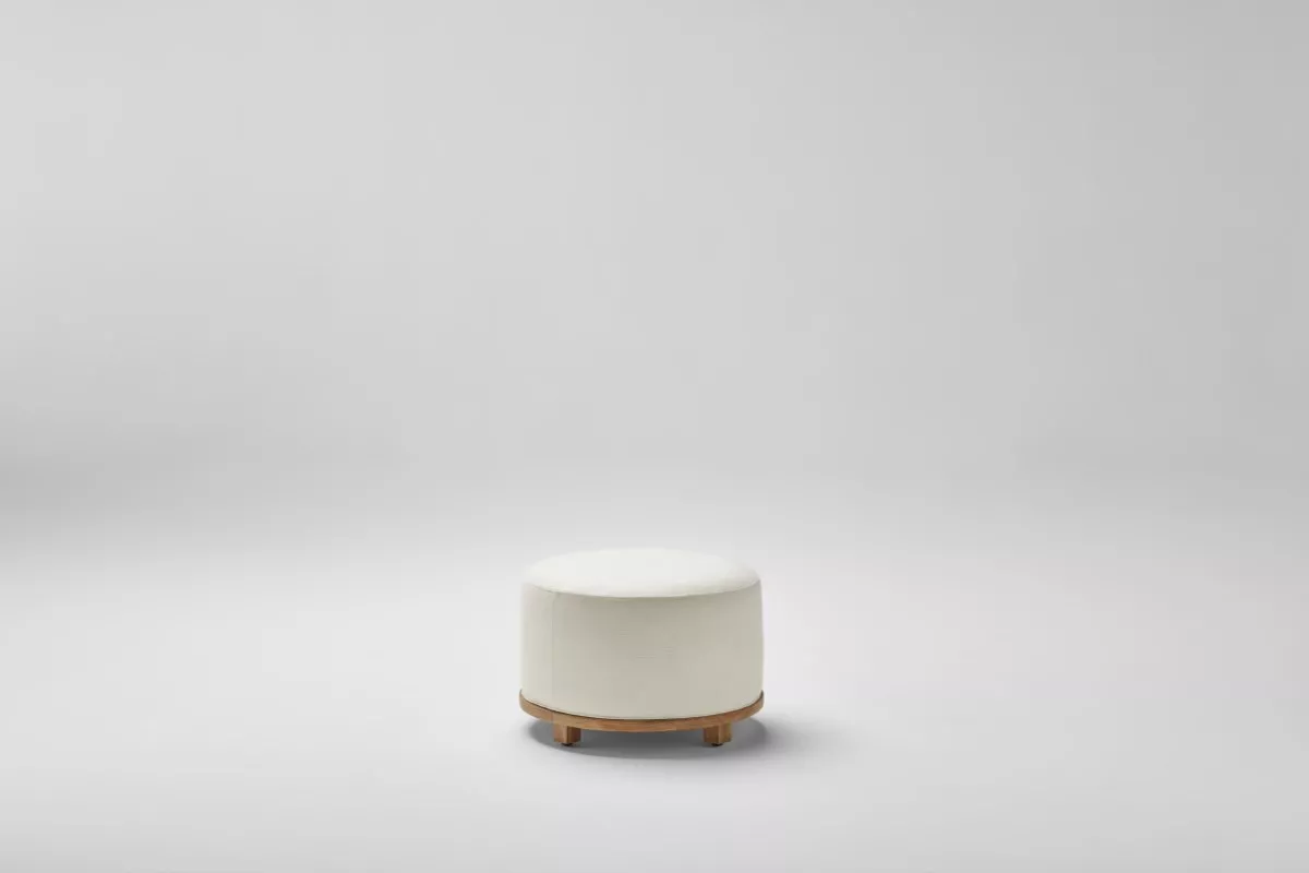 Der Fup Polsterhocker kombiniert elegantes Design mit erstklassigem Komfort und nachhaltigen Materialien. Der Hocker besteht aus einem runden Sockel mit einem Durchmesser von 56 cm, gefertigt aus Teakholz der Güteklasse A, das aus nachhaltig kontrollierten Wäldern in Indonesien stammt. Dieses hochwertige Teakholz verleiht dem Hocker nicht nur Stabilität und Langlebigkeit, sondern auch eine natürliche und warme Ausstrahlung.