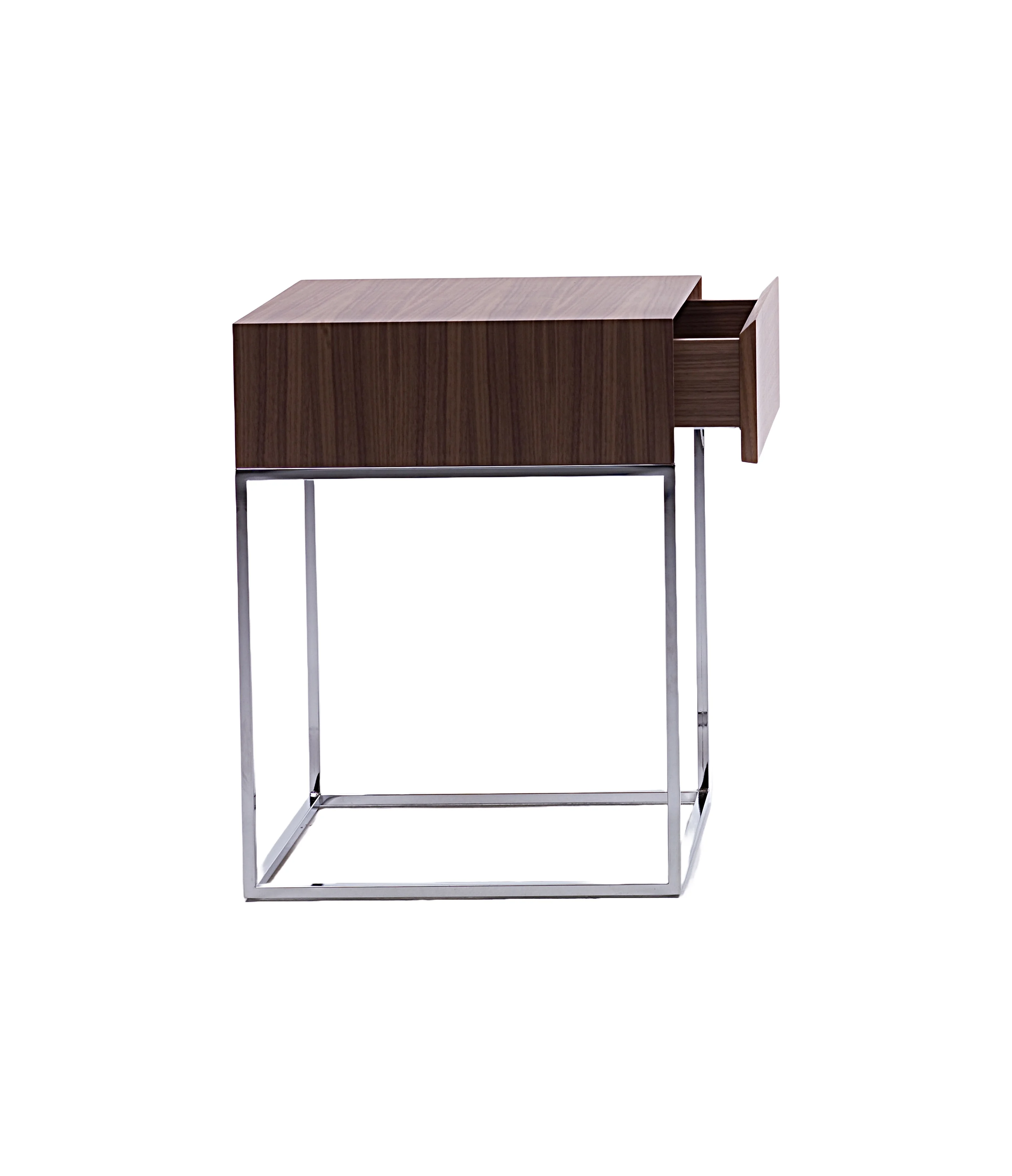 Eine praktische Schublade mit sanftem Schließmechanismus bietet zusätzlichen Stauraum und sorgt dafür, dass wichtige Utensilien immer griffbereit sind – perfekt als Nachttisch im Schlafzimmer oder als stilvoller Beistelltisch im Wohnzimmer.