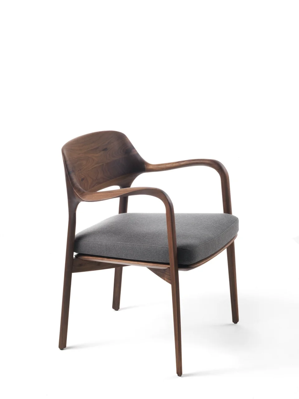 Der Ella Armlehnstuhl von Porada vereint zeitlose Eleganz mit erstklassigem Komfort und wird so zum stilvollen Highlight in jeder Einrichtung. Dieser Stuhl besticht durch seine hochwertige Verarbeitung und die natürliche Schönheit des massiven Nussbaum Canaletta, aus dem sowohl das Gestell als auch die Sitzfläche gefertigt sind. Die warmen Holztöne verleihen dem Möbelstück eine luxuriöse und zugleich gemütliche Ausstrahlung.