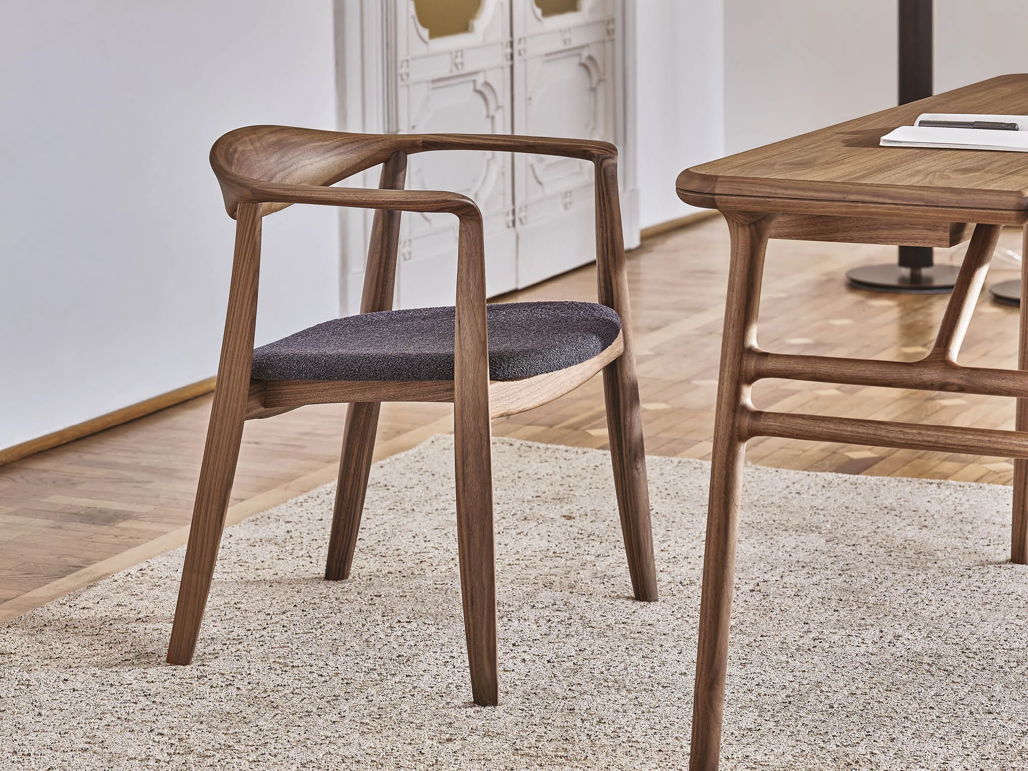 - Bezug: Stoffe oder Leder in verschiedenen Ausführungen (Moodbild in Stofffarbe Bouclage 98/20)