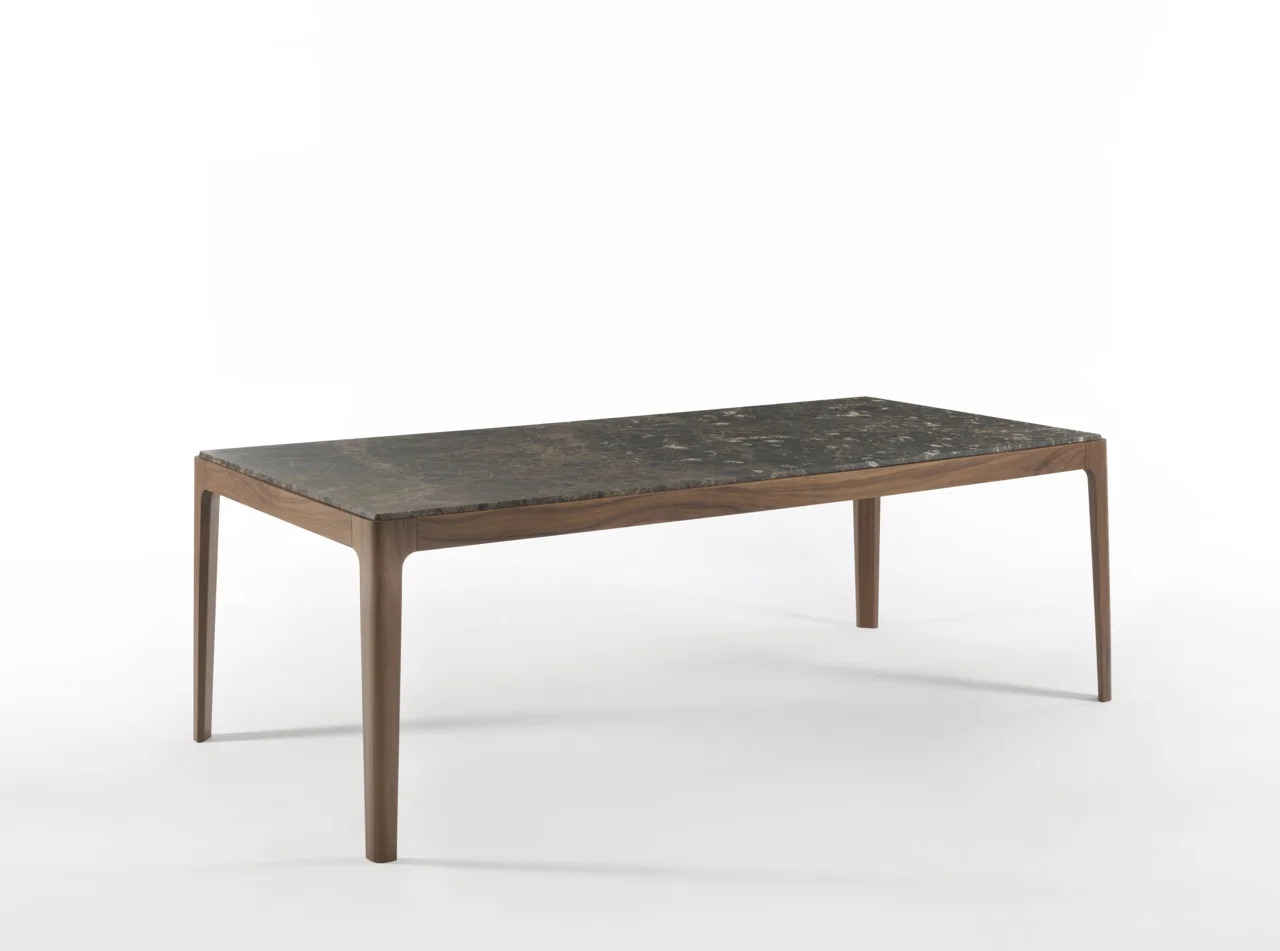 Der Ziggy Esstisch ist auch in einer Vielzahl rechteckiger Größen erhältlich, von 150 x 100 cm bis hin zu 260 x 100 cm. Dieser vielseitige Esstisch überzeugt durch sein elegantes Gestell aus massivem Nussbaum Canaletta oder Esche, das eine zeitlose Ästhetik und Stabilität bietet. Die Tischplatte ist in verschiedenen Ausführungen wählbar: aus edlem Holz für eine warme Atmosphäre, aus luxuriösem Marmor für eine elegante Ausstrahlung oder aus satiniertem, hinterlackiertem Glas für einen modernen, minimalistischen Look. Diese vielfältigen Optionen und Größen machen den Ziggy Esstisch zur idealen Wahl für unterschiedliche Raumkonzepte und individuelle Gestaltungswünsche, ob in der Küche, im Esszimmer oder im offenen Wohnbereich.