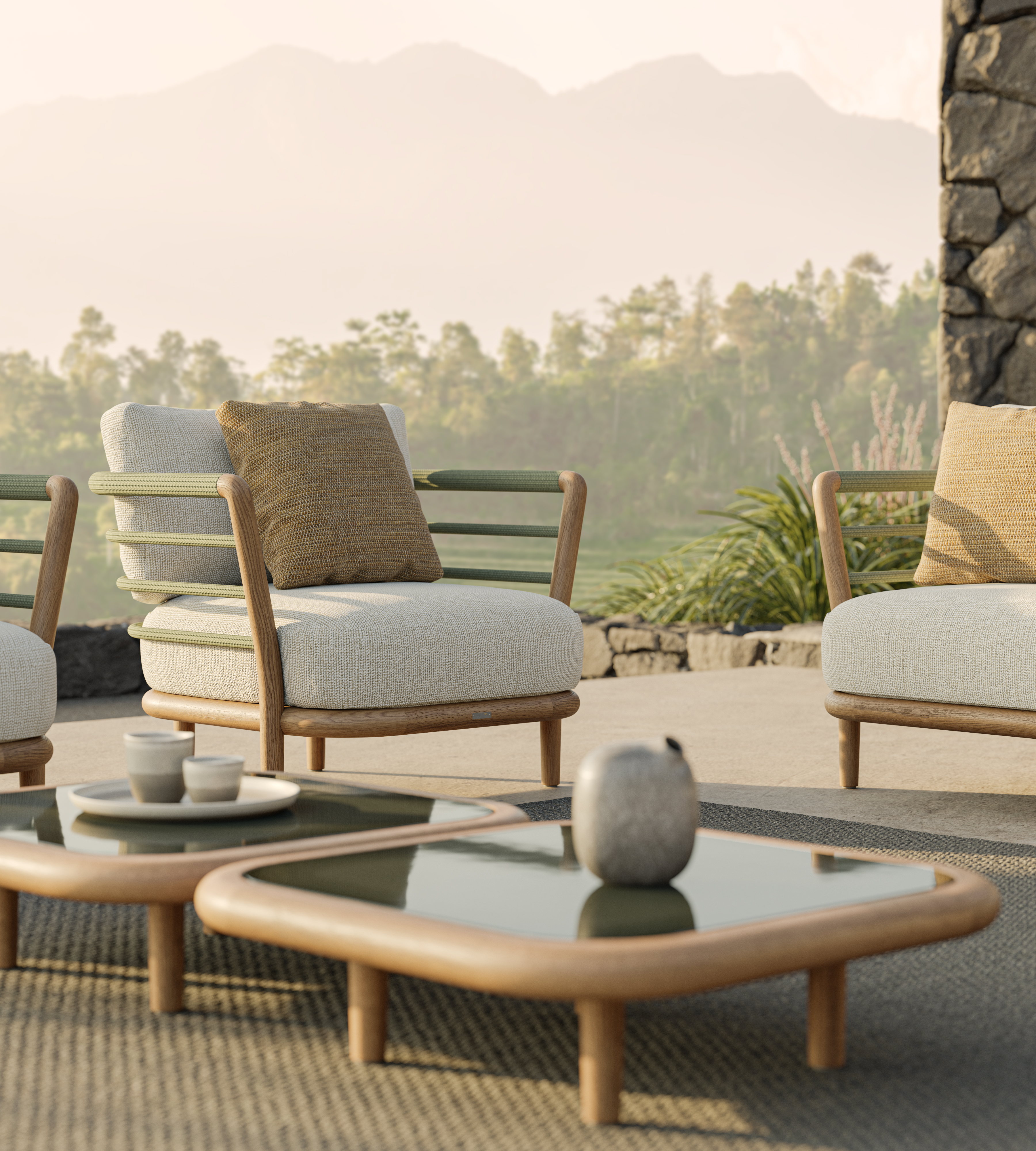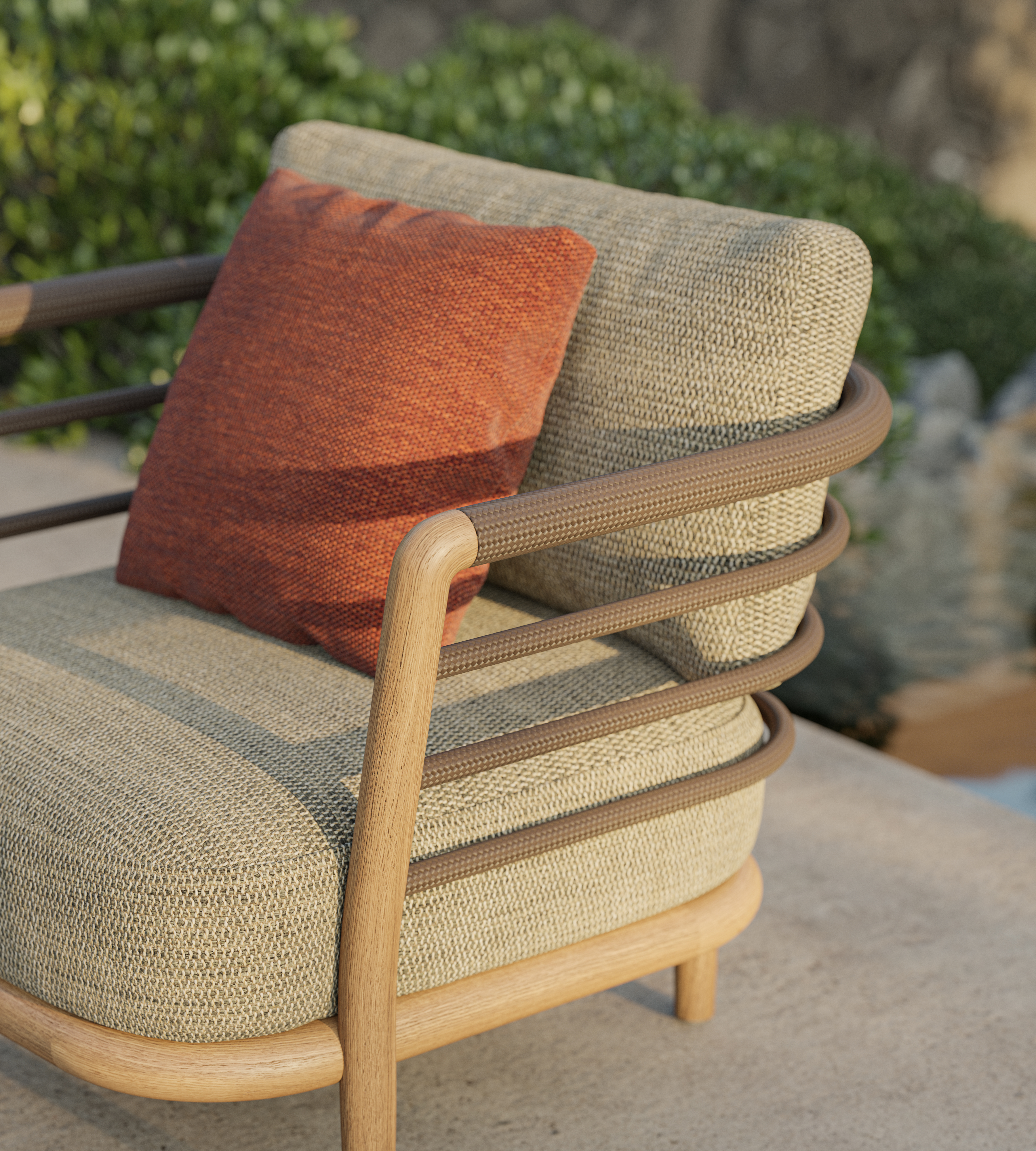 Die weichen Linien verleihen dem 1-Sitzer eine ruhige und warme Ausstrahlung, die sich harmonisch in hochwertige Terrassen- und Gartenkonzepte einfügt. Besonders charakteristisch für die Archy Lounge Kollektion sind die markanten Sleeves an den Rückenlehnen, die dem Design eine unverwechselbare Optik und eine besondere Materialtiefe verleihen.