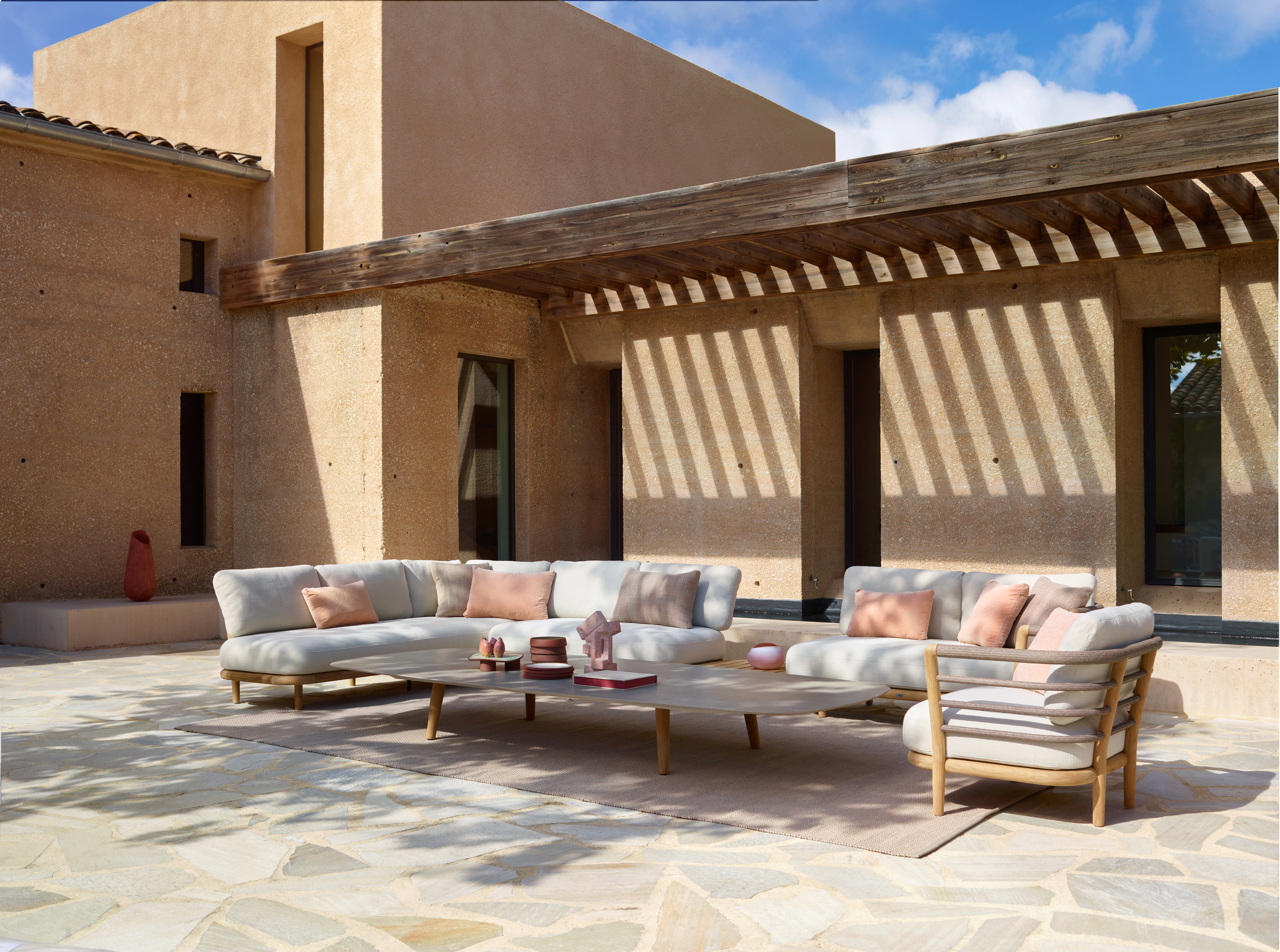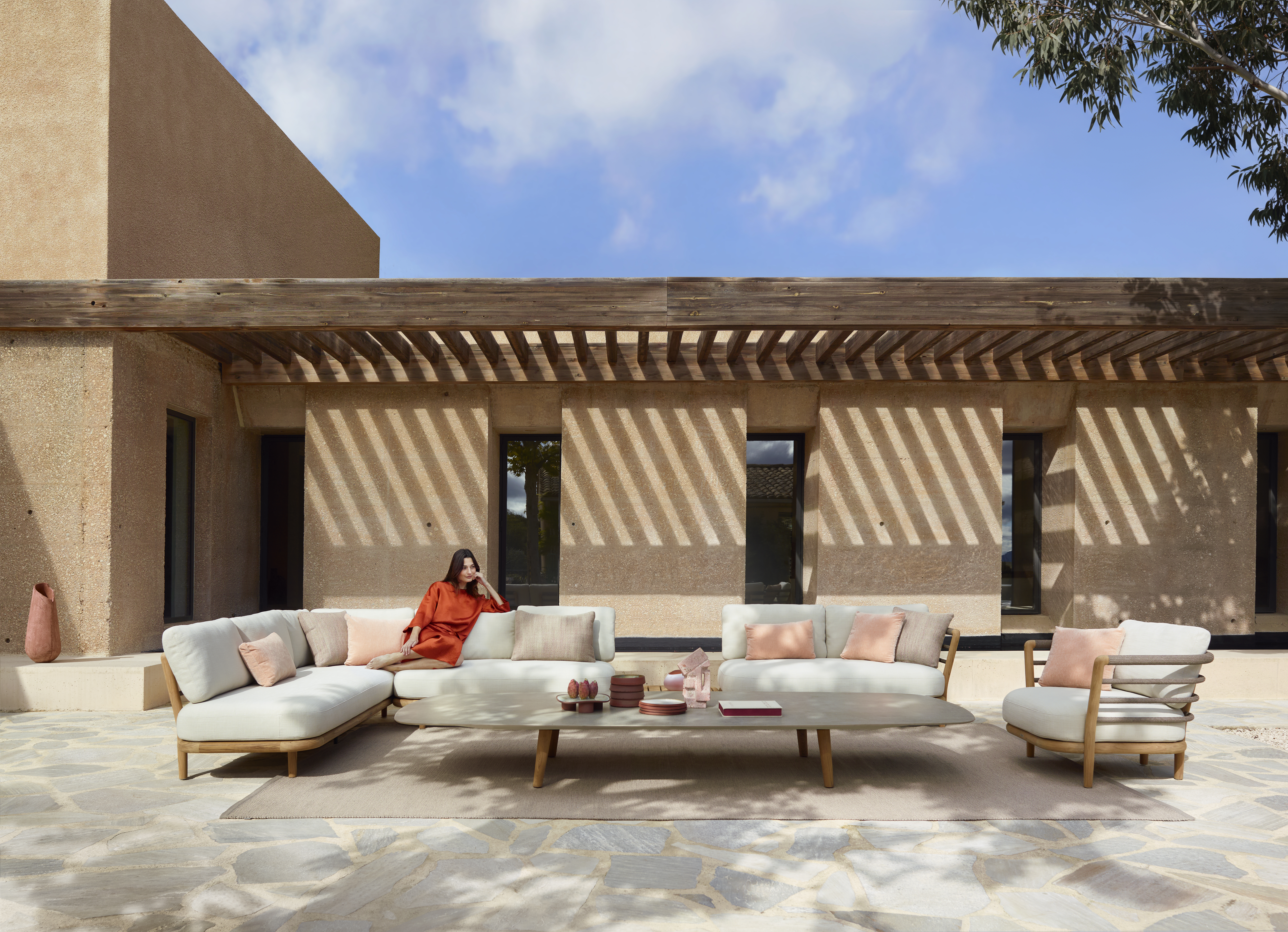 Sie möchten Ihren Außenbereich in eine stilvolle, großzügige Lounge-Zone verwandeln? Dann ist das Archy Lounge Set 01 von Royal Botania die ideale Wahl. Abgerundetes Premium-Teak, eine skulpturale Formensprache und die charakteristischen Sleeves an den Rückenlehnen ergeben ein elegantes Gesamtbild – warm, modern und außergewöhnlich einladend.