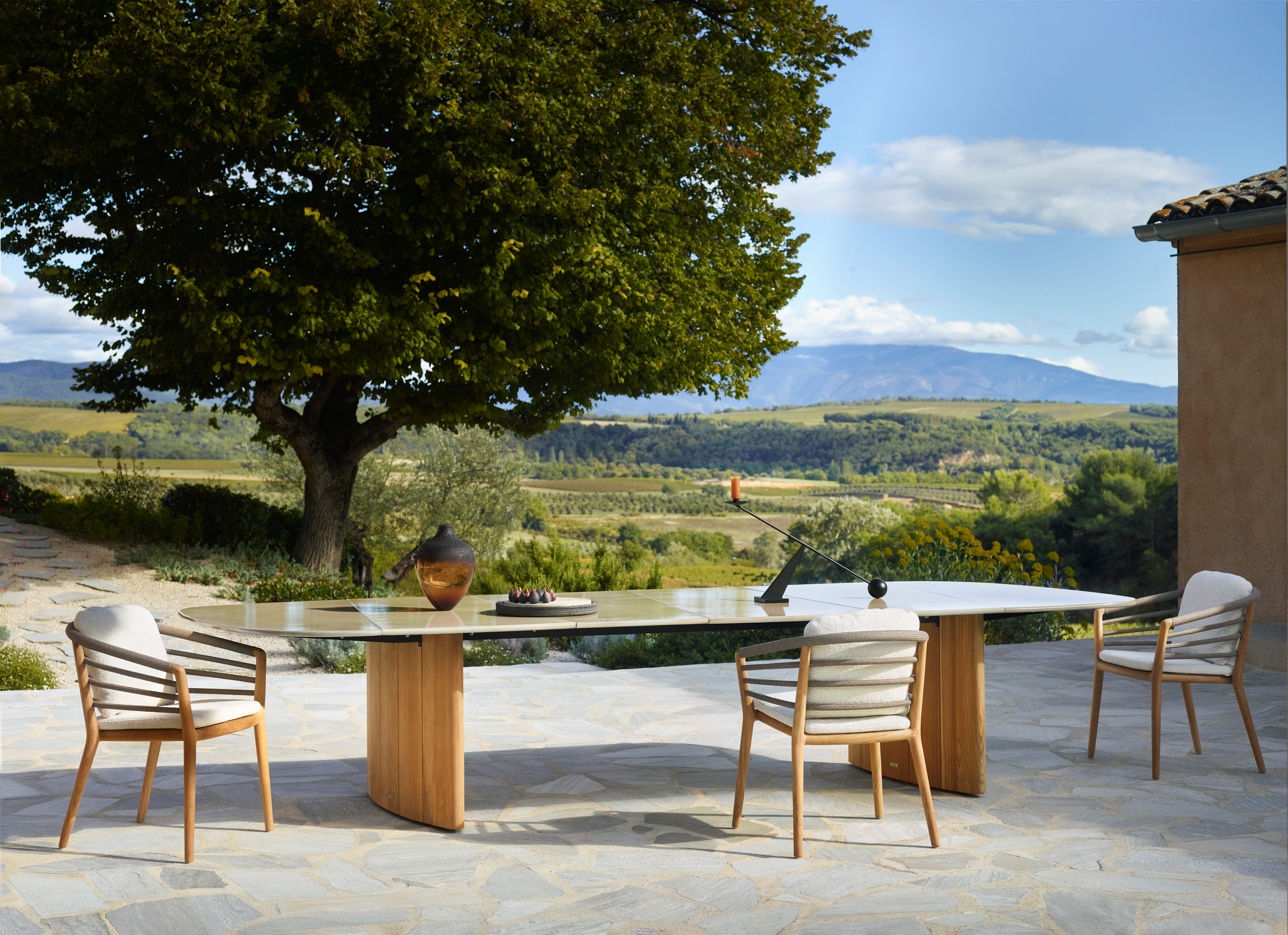 Der Regaliz Tisch in der Ausführung ist ein skulpturales Statement für moderne Outdoor-Dining-Bereiche.