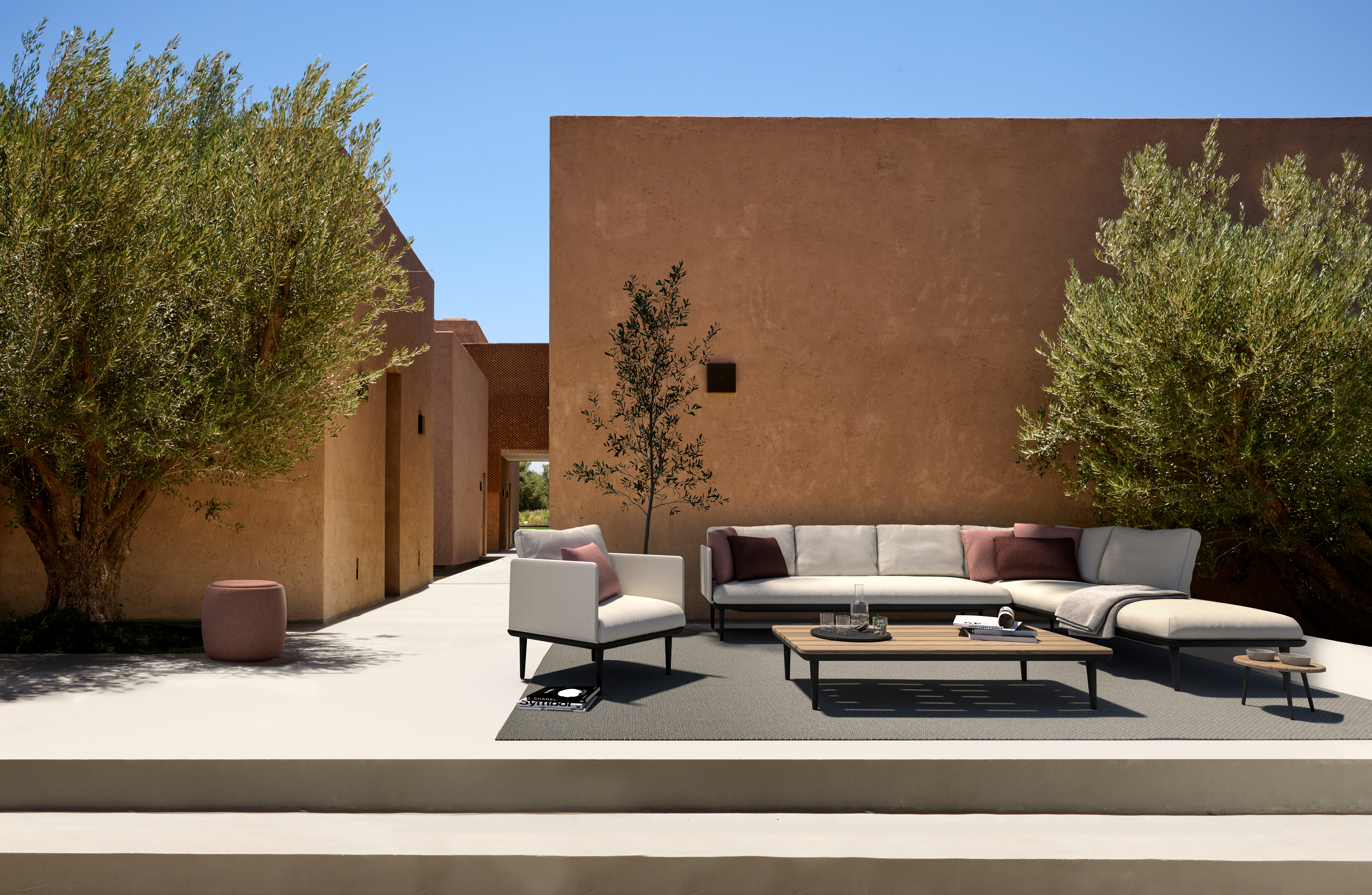 Royal Botania Styletto Lounge Eckmodul Das Styletto Lounge Eckmodul ist die flexible Basis der Kollektion: ein elegantes, tiefes Sitzmodul mit der typischen Styletto-Silhouette und schlanken, konisch zulaufenden Beinen. Als Solitär funktioniert es genauso gut wie als Baustein für individuelle Lounge-Landschaften – kombinierbar zu kompakten Arrangements oder großzügigen Setups. Durch die modulare Idee lässt sich das Element je nach Planung mit weiteren Komponenten der Styletto Lounge Serie erweitern und immer wieder neu konfigurieren. So entsteht ein Outdoor-Lounge-System, das sich Ihrem Platzangebot und Ihrem Lifestyle anpasst – ohne dabei die ruhige, minimalistische Ästhetik zu verlieren. Modulares Basiselement für flexible Lounge-Konfigurationen Tiefes Sitzen und klare, minimalistische Formensprache Elegante, konisch zulaufende Styletto-Beine als DesignmerkmalDekokissen ist nicht enthalten. Maße (L × H): 265 x 85 cm