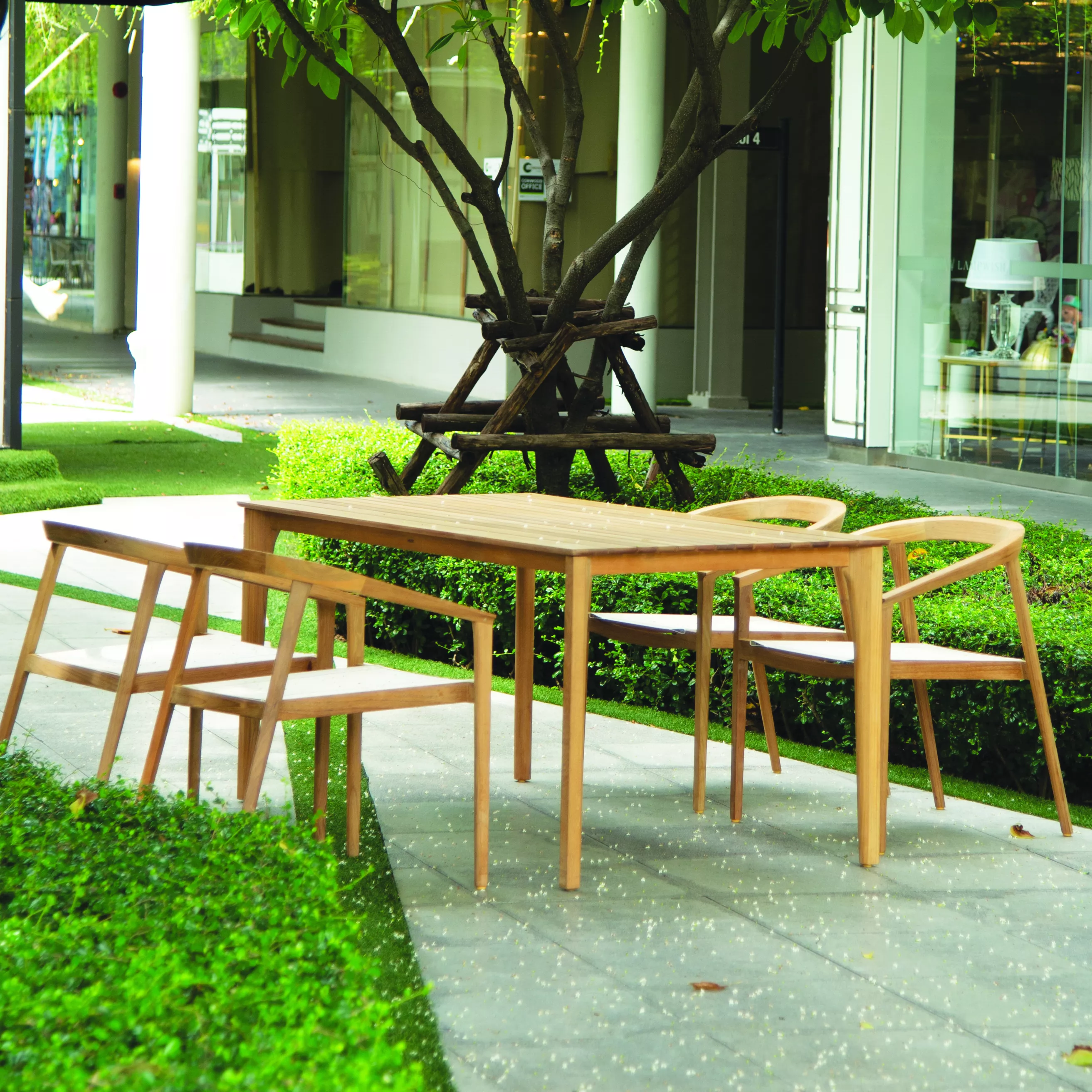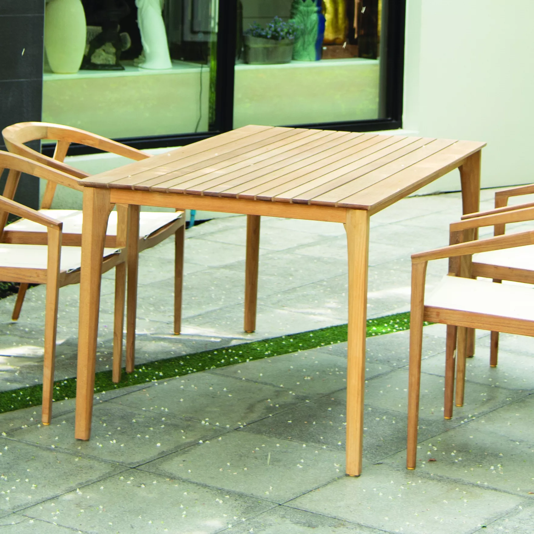 Der Monaco Tisch von Royal Mirage vereint zeitloses Design mit herausragender Handwerkskunst. Besonders schön sind die Tischbeine die über Eck am Tisch befestigt sind. Gefertigt aus ausgereiftem und sorgfältig ausgesuchtem Teakholz, profitiert dieser Tisch von einem hohen natürlichen Ölanteil, der für eine geringe Feuchtigkeitsaufnahme sorgt und das Arbeiten des Holzes minimiert. Diese Eigenschaften resultieren in einer enormen Stabilität und Langlebigkeit, wodurch der Monaco Tisch eine exzellente Wahl für anspruchsvolle Outdoor-Bereiche und stilvolle Aufenthaltsräume darstellt.