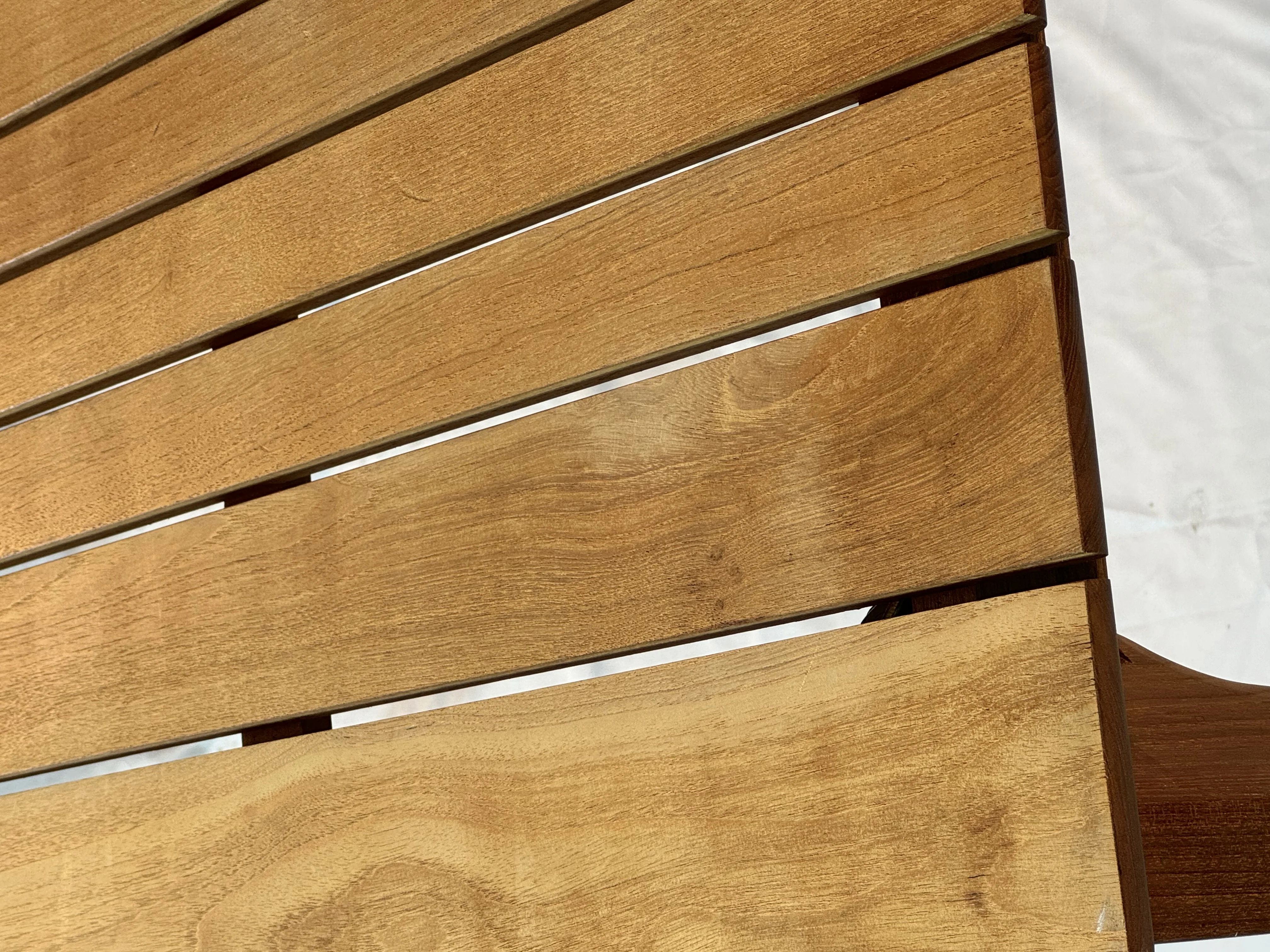 Klappbarer Hochlehner Casino mit Batyline®-Canatex Synthetikgewebe und Gestell aus Edelstahl.Das Batyline®-Synthetikgewebe ist besonders witterungsbeständig, UV-beständig und reißfest. Zudem bietet es einen hervorragenden Sitzkomfort und ist extrem pflegeleicht.Das Gestell ist aus rostfreiem Edelstahl gefertigt und sorgt somit für ausgezeichnete Stabilität. Der Stahl ist schmutzabweisend, rostfrei und leicht zu reinigen.Der Hochlehner ist 5-fach verstellbar.Mit Armlehnen aus Teakholz. Hochwertiger Edelstahl Textilene-Synthetikgewebe: Light Taupe Ganzjährig wetterfest Leicht zu reinigen