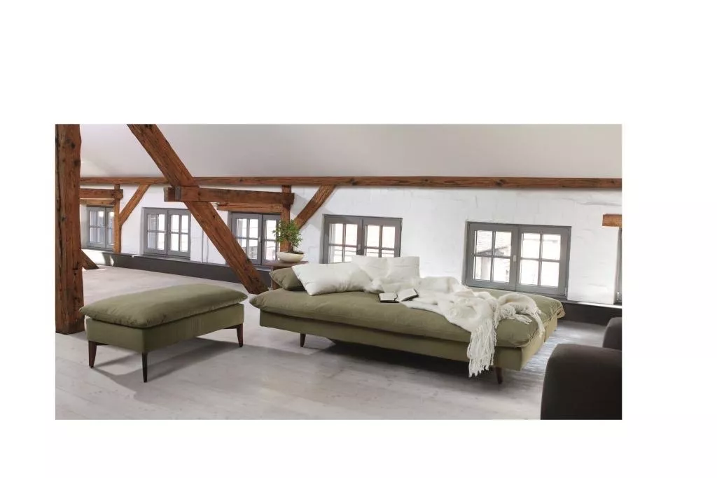 Signet Good Life Schlafsofa in verschiedenen Größen Tauchen Sie ein in die Welt des ultimativen Komforts mit dem Good Life Schlafsofa. Mit einer Auswahl an verschiedenen Rückenkissen und Fußausführungen können Sie das Design Ihres Schlafsofas ganz nach Ihren Vorlieben gestalten. Ob Sie sich für ein klassisches Aussehen mit traditionellen Kissen und Holzfüßen entscheiden oder für eine moderne Ästhetik mit schlanken Metallfüßen und kantigen Rückenkissen, die Möglichkeiten sind endlos. Jedes Detail wurde sorgfältig durchdacht, um Ihnen eine maßgeschneiderte Erfahrung zu bieten, die Ihren persönlichen Stil und Komfortbedürfnissen entspricht. Ob Sie nun Ihren Wohnbereich neu gestalten oder Ihren Gästen einen bequemen Schlafplatz bieten möchten, die Good Life Kollektion bietet eine Vielzahl von Optionen, um Ihre Bedürfnisse zu erfüllen. Und wenn Sie nach einer noch individuelleren Lösung suchen, stehen Ihnen unsere Experten gerne zur Verfügung, um maßgeschneiderte Anordnungen zu erstellen, die genau auf Ihre Anforderungen zugeschnitten sind. Erleben Sie den Luxus und die Vielseitigkeit des Good Life Schlafsofas und machen Sie jeden Moment zu einem Erlebnis des ultimativen Komforts und Stils.Gestell: Massives Buchenholz, FurnierholzplattenUnterfederung: FederholzleistenPolsterung: Polyätherschaum mit FillabdeckungSeitenteile albklappbarinkl. 2 Rückenkissen (siehe Mood Bilder)Standard Füße aus Buchenholz nach Signet-Farbmuster (auch Metallfuß oder in Edelstahl geschliffen möglich!)gegen Aufpreis: komplett abziehbare BezügeMaße: Schlafsofa 180: 208 - 254 x 98 x 85 cm (B x T x H)Schlafsofa 200: 228 - 274 x 98 x 85 cm (B x T x H)Schlafsofa 200 XXL: 228 - 274 x 138 x 85 cm (B x T x H)