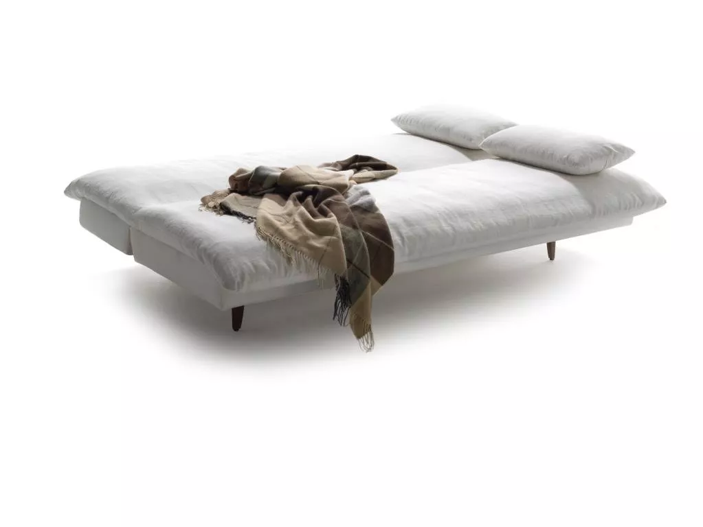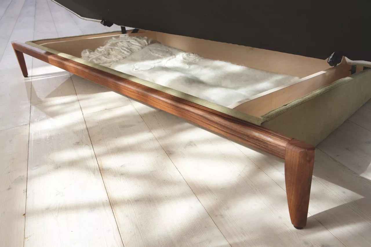 Entdecken Sie das Signet Ena Schlafsofa - eine Neuinterpretation der klassischen Kipp-Funktion mit integriertem Bettkasten für zusätzlichen Stauraum unter dem Sitz.