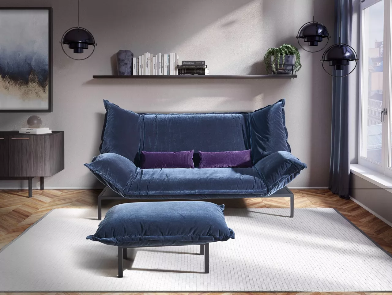 Besonders hervorzuheben ist die Kippfunktion, die das Sofa im Handumdrehen in ein bequemes Bett mit einer großzügigen Liegefläche von 218 x 146 cm verwandelt. Die umlaufende flatternde Biese verleiht dem Nuri einen lässigen, entspannten Look, der sich nach Belieben auch weglassen lässt, um das Design strenger zu gestalten. Das geradlinige Untergestell ist in schwarzem strukturiertem Metall oder Edelstahl erhältlich und unterstreicht den modernen Charakter des Sofas. Ein Möbelstück, das perfekt für alle ist, die sowohl Komfort als auch flexibles Design schätzen.