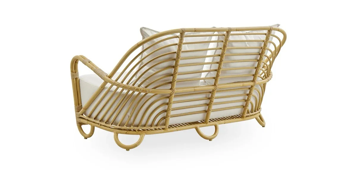 Das Charlottenborg Sofa wurde im Jahr 1936 vom bekannten dänischen Designer Arne Jacobsen entworfen. Das Sofa besteht aus dem Material Alu-Rattan auf einem Aluminiumrahmen geflochten.