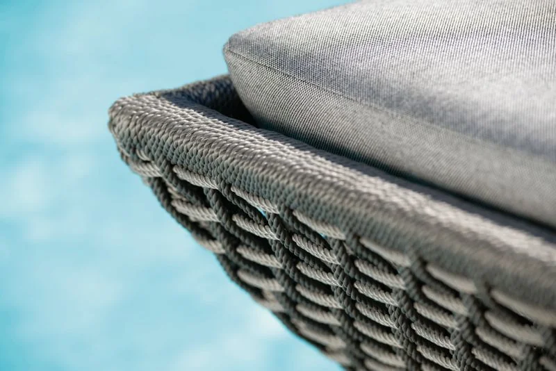 Stern GRETA Sessel Stern • Kordel Das leichte Aluminiumgestell sorgt für eine moderne Optik und hohe Stabilität, während die robuste Kordelbespannung (Synthetikfaser) eine elegante Note verleiht und gleichzeitig hohen Sitz- und Liegekomfort bietet. Das weiche Kissenset (100 % Polyacryl) macht das Sitzen besonders bequem. Perfekt für Garten, Terrasse oder Balkon! Polypropylen zeichnet sich durch seine besondere Strapazierfähigkeit aus. Es nimmt kaum Feuchtigkeit auf, ist äußerst lichtecht und hält Temperaturen bis –10 °C mühelos stand. Dank dieser Eigenschaften eignet sich die Faser ideal für den Einsatz im Outdoorbereich. Weitere Materialinformationen entnehmen Sie gerne den beigefügten Dokumenten. Produkteigenschaften Auflage: Abnehmbar & waschbar, 100% Polyacryl Alle Sitz- und Rückenkissen verfügen über einen Reißverschluss Gestell: Aluminium Sitzfläche: Kordel (100% Polypropylen) Maße: B62 × T62 × H87 cmSitzhöhe: 50 cm mit Kissen Armlehnenhöhe: 64,5 cm Gewicht: 6,9 kg Design: Winkelbauer