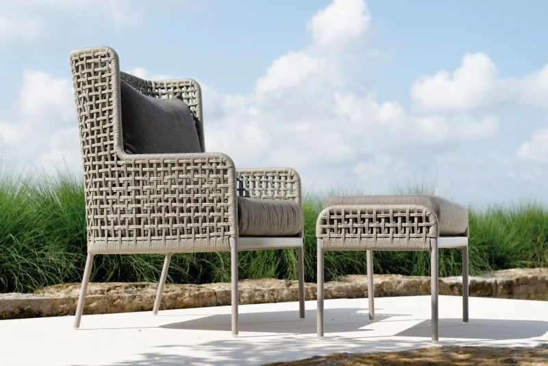 Stern GRETA Lounge-Hocker • Kordel Der Greta Lounge-Hocker von Stern besticht durch sein stilvolles Design und bietet sich ideal in der Kombination mit Loungesessel. Das leichte Aluminiumgestell sorgt für eine moderne Optik und hohe Stabilität, während die robuste Kordelbespannung (Synthetikfaser) eine elegante Note verleiht und gleichzeitig hohen Sitz- und Liegekomfort bietet. Das weiche Kissenset (100 % Polyacryl) macht das Sitzen besonders bequem. Perfekt für Garten, Terrasse oder Balkon! Polypropylen zeichnet sich durch seine besondere Strapazierfähigkeit aus. Es nimmt kaum Feuchtigkeit auf, ist äußerst lichtecht und hält Temperaturen bis –10 °C mühelos stand. Dank dieser Eigenschaften eignet sich die Faser ideal für den Einsatz im Outdoorbereich. Materialinformationen entnehmen Sie gerne den beigefügten Dokumenten. Produkteigenschaften Auflage: Abnehmbar & waschbar, 100% Polyacryl Alle Sitz- und Rückenkissen verfügen über einen Reißverschluss Gestell: Aluminium Sitzfläche: Kordel (100% Polypropylen) Maße: B75 × T40 × H47 cmSitzhöhe: 47 cm mit Kissen Gewicht: 4,5 kg Design: Winkelbauer
