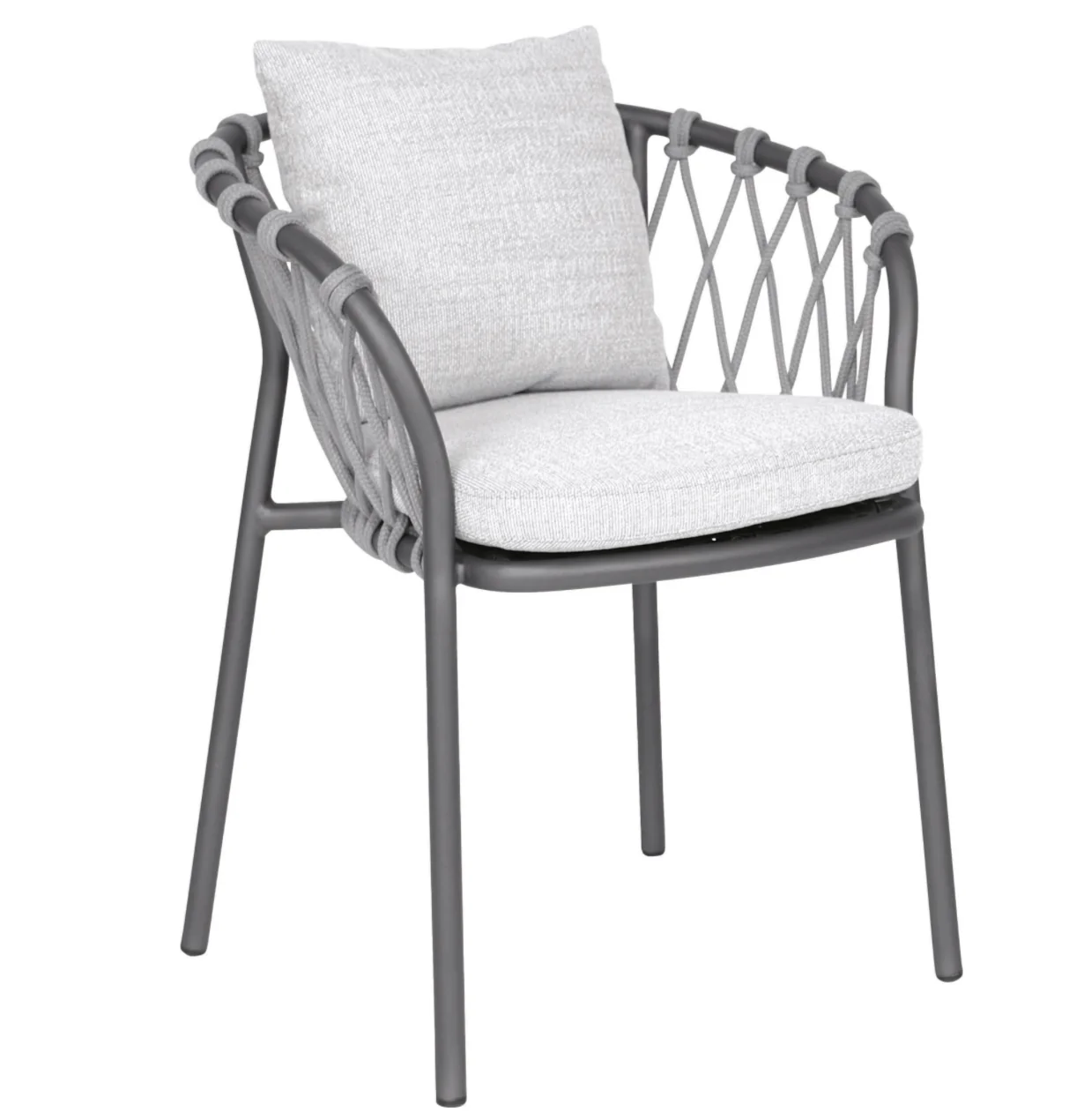 Stern GRETA Sessel Stern • Kordel Das leichte Aluminiumgestell sorgt für eine moderne Optik und hohe Stabilität, während die robuste Kordelbespannung (Synthetikfaser) eine elegante Note verleiht und gleichzeitig hohen Sitz- und Liegekomfort bietet. Das weiche Kissenset (100 % Polyacryl) macht das Sitzen besonders bequem. Perfekt für Garten, Terrasse oder Balkon! Polypropylen zeichnet sich durch seine besondere Strapazierfähigkeit aus. Es nimmt kaum Feuchtigkeit auf, ist äußerst lichtecht und hält Temperaturen bis –10 °C mühelos stand. Dank dieser Eigenschaften eignet sich die Faser ideal für den Einsatz im Outdoorbereich. Weitere Materialinformationen entnehmen Sie gerne den beigefügten Dokumenten. Produkteigenschaften Auflage: Abnehmbar & waschbar, 100% Polyacryl Alle Sitz- und Rückenkissen verfügen über einen Reißverschluss Gestell: Aluminium Sitzfläche: Kordel (100% Polypropylen) Maße: B62 × T62 × H87 cmSitzhöhe: 50 cm mit Kissen Armlehnenhöhe: 64,5 cm Gewicht: 6,9 kg Design: Winkelbauer