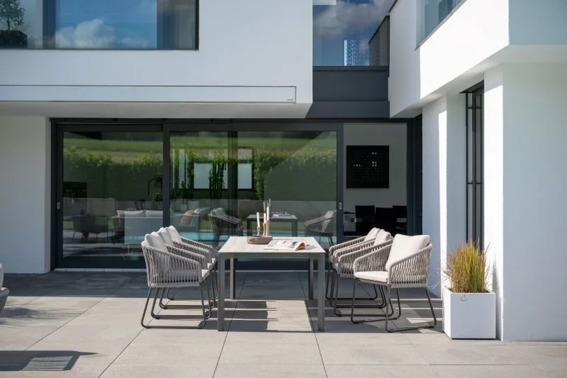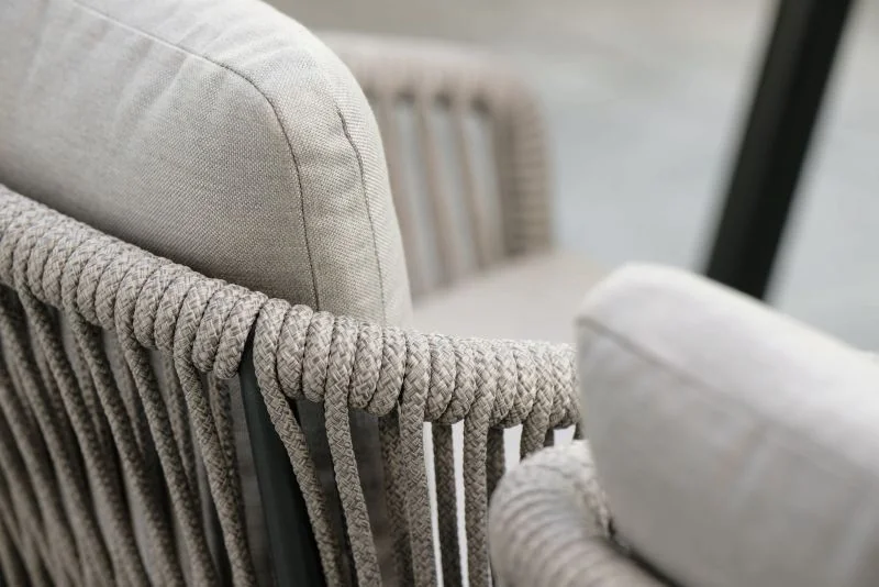 Die MARLA Kollektion vereint modernes Design mit höchstem Komfort und schafft eine stilvolle Oase der Entspannung – ob im Garten, auf der Terrasse oder im Wohnbereich. Das leichte und stabile Aluminiumgestell sorgt für eine langlebige und wetterfeste Basis, während das aufwendig geflochtene Kordeldesign ein elegantes Statement setzt. Die feinen, geschwungenen Linien der Möbel verleihen der Kollektion eine einzigartige Leichtigkeit und moderne Ästhetik.