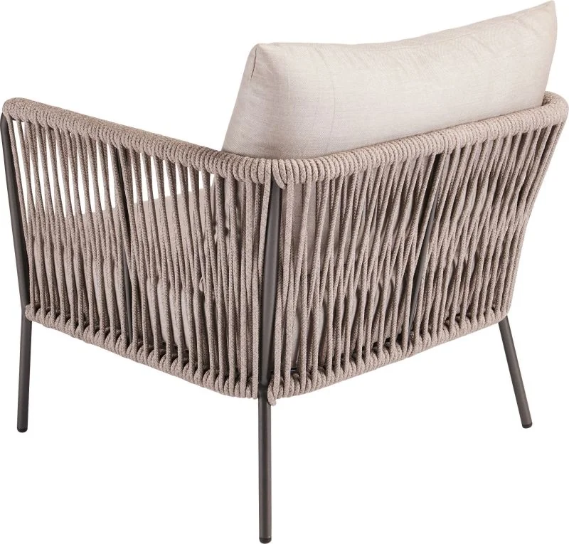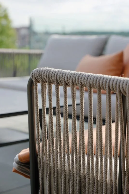 Die MARLA Kollektion vereint modernes Design mit höchstem Komfort und schafft eine stilvolle Oase der Entspannung – ob im Garten, auf der Terrasse oder im Wohnbereich. Das leichte und stabile Aluminiumgestell sorgt für eine langlebige und wetterfeste Basis, während das aufwendig geflochtene Kordeldesign ein elegantes Statement setzt. Die feinen, geschwungenen Linien der Möbel verleihen der Kollektion eine einzigartige Leichtigkeit und moderne Ästhetik.