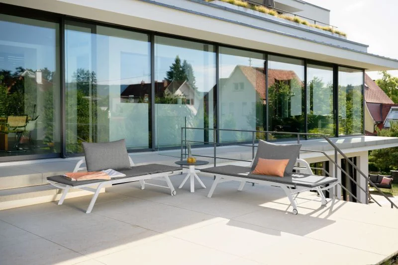 Die NOVI Rollenliege von Stern verbindet modernes Design mit multifunktionaler Nutzung und ist ein echtes Highlight für den Outdoor-Bereich. Ob als komfortable Liege zum Sonnenbaden, stilvolle Bank oder entspannte Lounge-Erweiterung – NOVI passt sich mühelos jeder Situation an. Ihr schlankes, elegantes Aluminiumgestell und die hochwertige Textilen-Bespannung sorgen für eine luftige, zeitlose Optik, während das weiche Rückenkissen aus 100 % Polyacryl maximalen Komfort bietet.