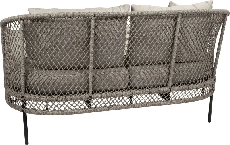 Stern GRETA Lounge-Sofa • Kordel Das Greta Lounge-Sofa von Stern besticht durch sein stilvolles Design und höchsten Sitzkomfort. Das leichte Aluminiumgestell sorgt für eine moderne Optik und hohe Stabilität, während die robuste Kordelbespannung (Synthetikfaser) eine elegante Note verleiht und gleichzeitig hohen Sitz- und Liegekomfort bietet. Das weiche Kissenset (100 % Polyacryl) macht das Sitzen besonders bequem. Perfekt für Garten, Terrasse oder Balkon! Polypropylen zeichnet sich durch seine besondere Strapazierfähigkeit aus. Es nimmt kaum Feuchtigkeit auf, ist äußerst lichtecht und hält Temperaturen bis –10 °C mühelos stand. Dank dieser Eigenschaften eignet sich die Faser ideal für den Einsatz im Outdoorbereich. Weitere Materialinformationen entnehmen Sie gerne den beigefügten Dokumenten. ProdukteigenschaftenAuflage: Abnehmbar & waschbar, 100% Polyacryl Alle Sitz- und Rückenkissen verfügen über einen ReißverschlussGestell: AluminiumSitzfläche: Kordel (100% Polypropylen)Maße: B166 × T74 × H102 cmSitzhöhe: 47 cm mit KissenArmlehnenhöhe: 62,5 cmGewicht: 21,1 kgFarbe: Anthrazit mit Kordel Platin und Kissen SeidengrauDesign: Winkelbauer