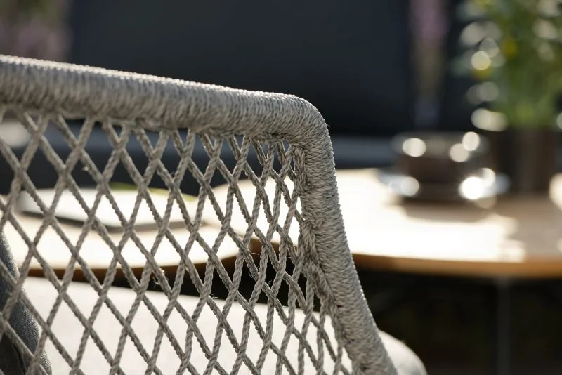 Stern GRETA Dining Set (Ecke) • Kordel Genießen Sie entspannte Stunden unter der Sonne mit dem Stern Greta Dining Ecke. Diese hochwertige Bank Ecke vereint stilvolles Design mit höchstem Komfort und langlebigen Materialien. Das leichte Aluminiumgestell sorgt für eine moderne Optik und hohe Stabilität, während die robuste Kordelbespannung (Synthetikfaser) eine elegante Note verleiht und gleichzeitig hohen Sitz- und Liegekomfort bietet. Das weiche Kissenset (100 % Polyacryl) macht das Sitzen besonders bequem. Perfekt für Garten, Terrasse oder Balkon! Polypropylen zeichnet sich durch seine besondere Strapazierfähigkeit aus. Es nimmt kaum Feuchtigkeit auf, ist äußerst lichtecht und hält Temperaturen bis –10 °C mühelos stand. Dank dieser Eigenschaften eignet sich die Faser ideal für den Einsatz im Outdoorbereich. Materialinformationen entnehmen Sie gerne den beigefügten Dokumenten. Produkteigenschaften Auflage: Abnehmbar & waschbar, 100% Polyacryl Alle Sitz- und Rückenkissen verfügen über einen Reißverschluss Gestell: Aluminium Optional: Ecke links oder rechts (sitzend)Sitzfläche: Kordel (100% Polypropylen) Maße: B252 × T54 × H86 cmSitzhöhe: 48 cm mit Kissen Armlehnenhöhe: 62,5 cm Gewicht: 46 kg Design: WinkelbauerDas anthrazitfarbene Aluminiumgestell sorgt für eine moderne Optik und hohe Stabilität. Die Sitzfläche aus robuster Kordelbespannung in Platin (Ø 4 mm, 100 % Polypropylen) verleiht der Bank eine elegante Note und bietet gleichzeitig hohen Sitz- und Liegekomfort. Produkteigenschaften Gestell: Aluminium, Farbe AnthrazitBestehend aus zwei Elementen die eine Eckbank erzeugen Sitzfläche: Kordel (100% Polypropylen), Farbe Platin Auflage: Seidengrau, 100% Polyacryl, abnehmbar & waschbar Optional: Ecke links oder rechts (sitzend) Maße: B252 × T54 × H86 cm Gewicht: 46 kg