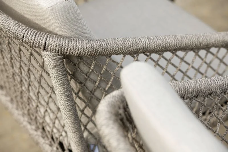 Stern GRETA Lounge-Sessel • Kordel Der Greta Lounge-Sessel von Stern besticht durch sein stilvolles Design und höchsten Sitzkomfort. Das leichte Aluminiumgestell sorgt für eine moderne Optik und hohe Stabilität, während die robuste Kordelbespannung (Synthetikfaser) eine elegante Note verleiht und gleichzeitig hohen Sitz- und Liegekomfort bietet. Das weiche Kissenset (100 % Polyacryl) macht das Sitzen besonders bequem. Perfekt für Garten, Terrasse oder Balkon! Polypropylen zeichnet sich durch seine besondere Strapazierfähigkeit aus. Es nimmt kaum Feuchtigkeit auf, ist äußerst lichtecht und hält Temperaturen bis –10 °C mühelos stand. Dank dieser Eigenschaften eignet sich die Faser ideal für den Einsatz im Outdoorbereich. Weitere Materialinformationen entnehmen Sie gerne den beigefügten Dokumenten. ProdukteigenschaftenAuflage: Abnehmbar & waschbar, 100% Polyacryl Alle Sitz- und Rückenkissen verfügen über einen ReißverschlussGestell: AluminiumSitzfläche: Kordel (100% Polypropylen)Maße: B76 × T76 × H102 cmSitzhöhe: 47 cm mit KissenArmlehnenhöhe: 59 cmGewicht: 12,4 kgDesign: Winkelbauer