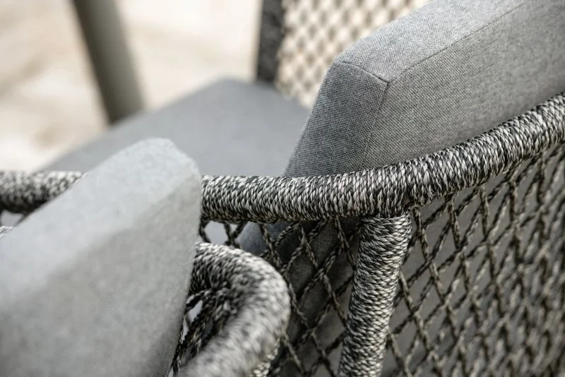 Stern GRETA Sessel Stern • Kordel Das leichte Aluminiumgestell sorgt für eine moderne Optik und hohe Stabilität, während die robuste Kordelbespannung (Synthetikfaser) eine elegante Note verleiht und gleichzeitig hohen Sitz- und Liegekomfort bietet. Das weiche Kissenset (100 % Polyacryl) macht das Sitzen besonders bequem. Perfekt für Garten, Terrasse oder Balkon! Polypropylen zeichnet sich durch seine besondere Strapazierfähigkeit aus. Es nimmt kaum Feuchtigkeit auf, ist äußerst lichtecht und hält Temperaturen bis –10 °C mühelos stand. Dank dieser Eigenschaften eignet sich die Faser ideal für den Einsatz im Outdoorbereich. Weitere Materialinformationen entnehmen Sie gerne den beigefügten Dokumenten. Produkteigenschaften Auflage: Abnehmbar & waschbar, 100% Polyacryl Alle Sitz- und Rückenkissen verfügen über einen Reißverschluss Gestell: Aluminium Sitzfläche: Kordel (100% Polypropylen) Maße: B62 × T62 × H87 cmSitzhöhe: 50 cm mit Kissen Armlehnenhöhe: 64,5 cm Gewicht: 6,9 kg Design: Winkelbauer