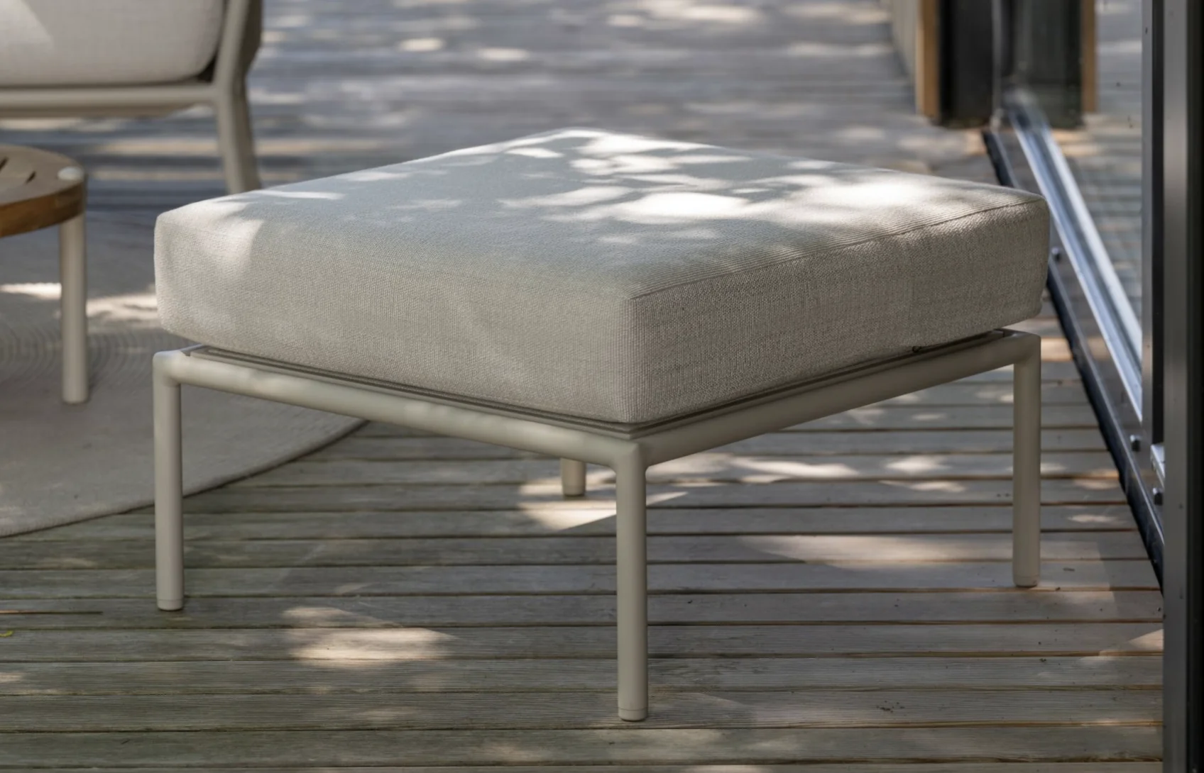 Stern COCO Lounge-Hocker • verschiedene Farben Die Lounge COCO erweitert das beliebte Outdoor-Thema Aluminium in Kombination mit Textilien. In der neuen Trendfarbe Greige – einer Mischung aus Grau und Beige – wird sie zum echten Blickfang. Das modulare System umfasst ein Eckelement, ein Mittelelement sowie einen Hocker und bietet Ihnen maximale Freiheit bei der individuellen Gestaltung Perfekt für Garten, Terrasse oder Balkon! ProdukteigenschaftenAuflage: Abnehmbar & waschbar, 100% Polyacryl Alle Sitz- und Rückenkissen verfügen über einen ReißverschlussGestell: AluminiumMaße: L: 82 cm x B: 82 cm x H: 39 cm, Sitzhöhe: 39 cm mit Kissen, Gewicht: 7 kgStoffe: 5 Jahresgarantie bei Lichtechtheit Design: Kümmel