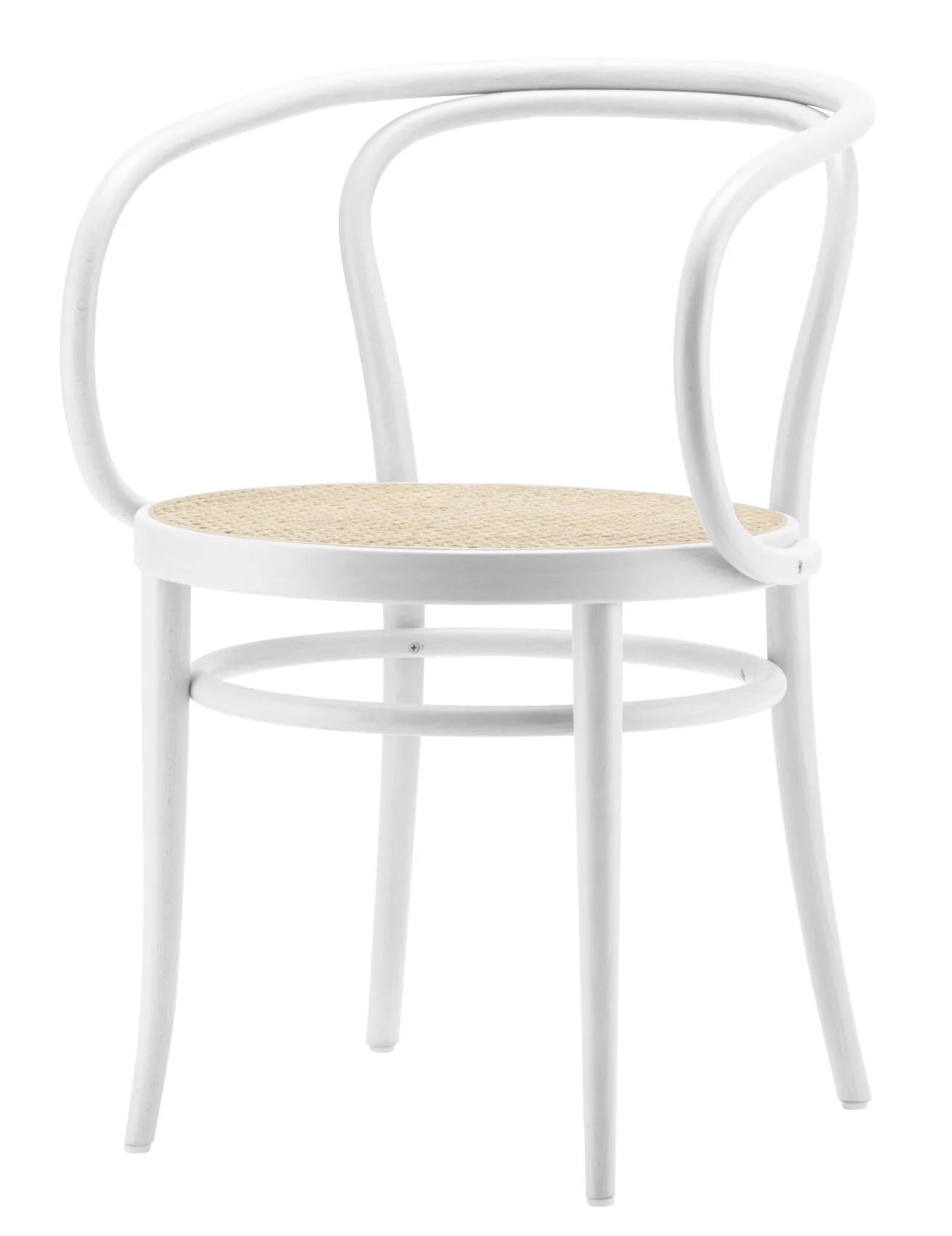 Die THONET Stühle 209 und 210 sind klassische Bugholz-Armlehnenstühle, die durch ihr elegantes Design und die Verwendung hochwertiger Materialien überzeugen. Beide Modelle bestehen aus gebogener, gedämpfter Rotbuche, die über Formen gebogen und auf eine Holzfeuchte von 8 % getrocknet wird.