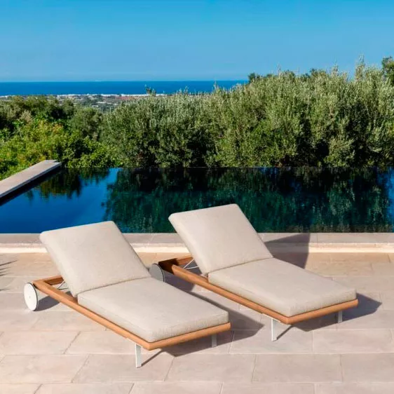 Durch ein ungewöhnliches Modularitätskonzept entsteht ein horizontaler Rahmen aus robustem Accoya-Holz, der von zartem Aluminiumfuß gestützt wird. Geometrische und lineare Kissen in verschiedenen Größen ermöglichen eine Vielzahl an Kombinationen und Szenarien. Das Ergebnis ist eine Kollektion mit einer anspruchsvollen Seele, die jedem Außenbereich Charakter verleiht.